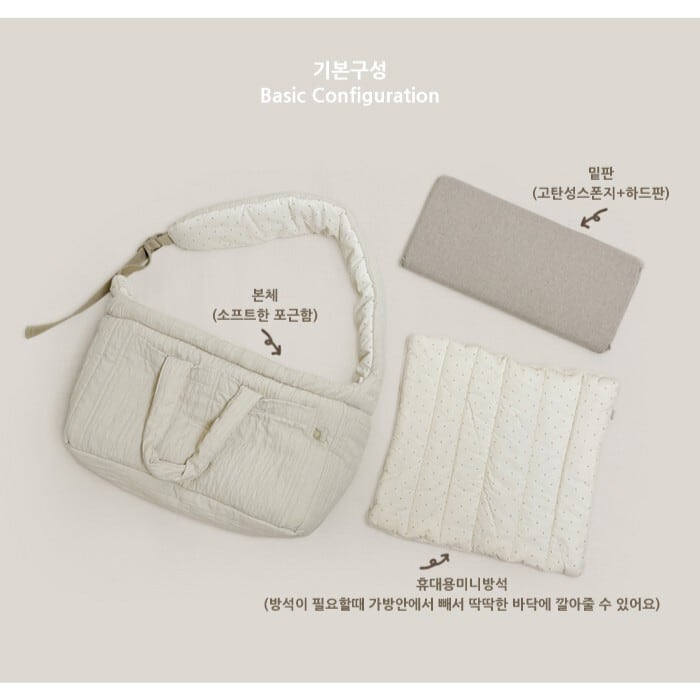 重さ:バッグ本体 = 600g /バッグ本体 + 携帯用ミニ座布団 + 下板 = 950g