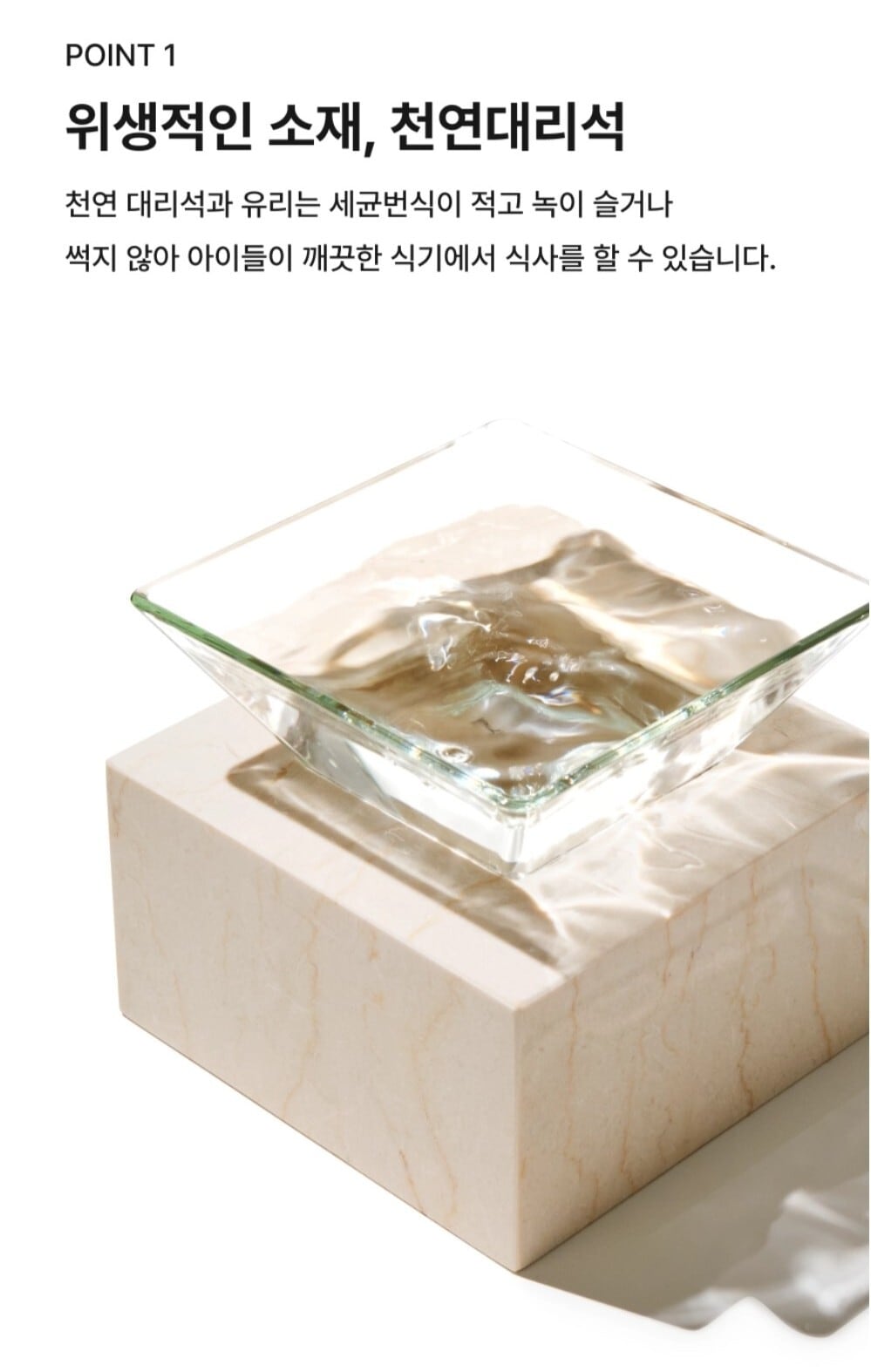 重量感のある大理石の食器は、揺れることなく快適な食事時間を