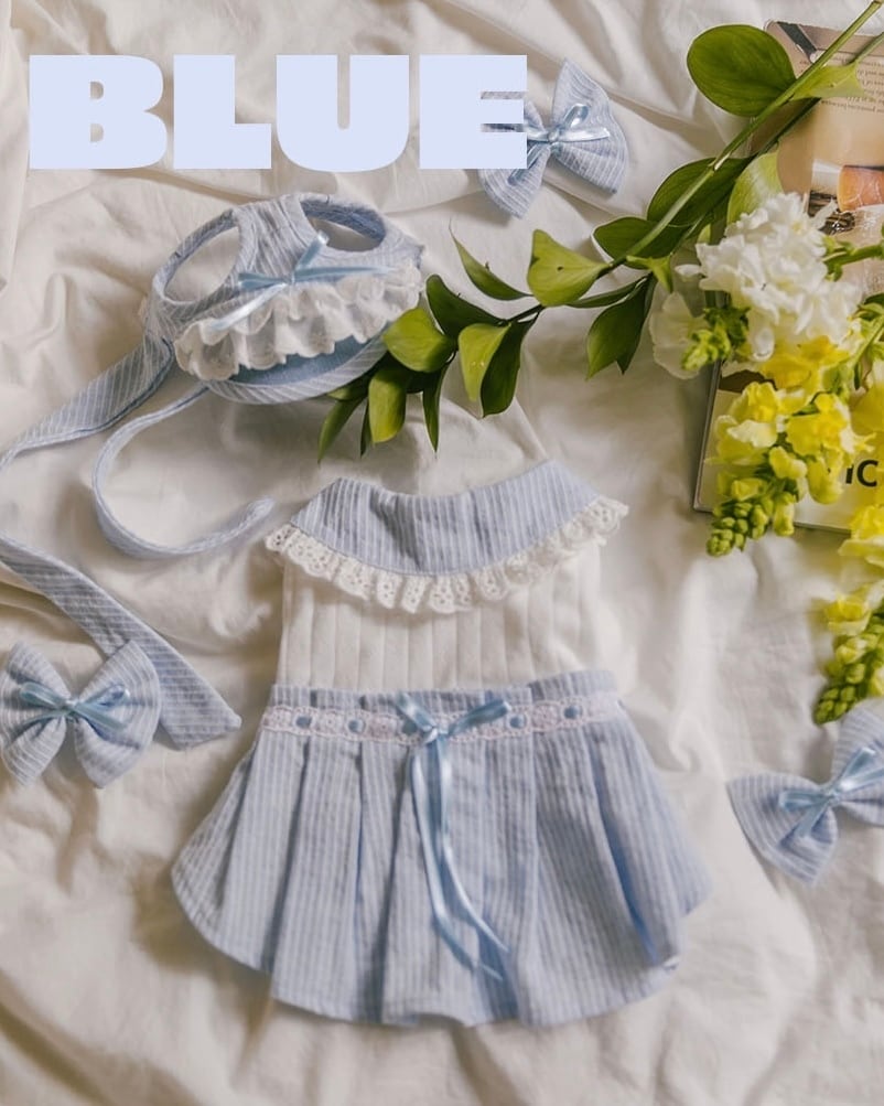 ソフトなカラー感のスカート生地にリボンとレースでポイントを与え