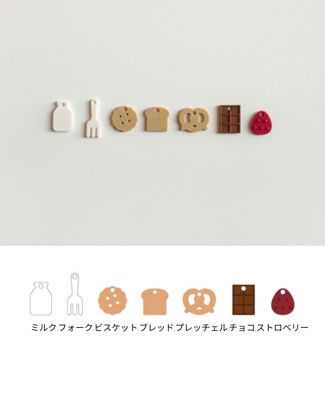 ミルク.フォーク.ビスケット.ブレッド.プレッチェル.チョコ.ストロベリー