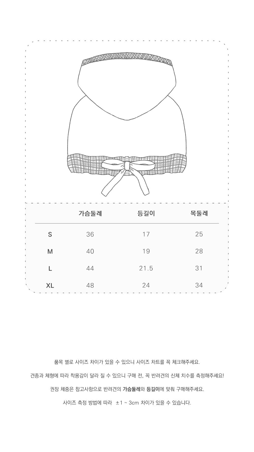 犬種や体型によってフィット感が変わることがありますので、購入前に必ずペットの体のサイズを測定してください!
