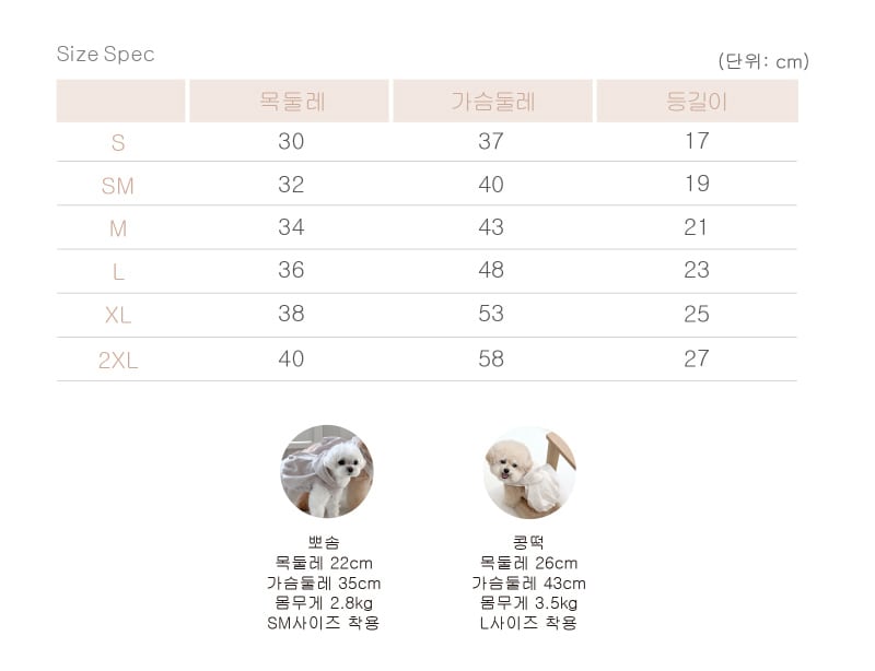 SM 首回り/32cm 胸囲/40cm 着丈/19cm