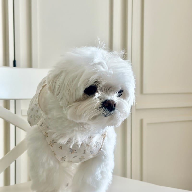 マルチーズ:首回り22cm 胸囲35cm 体重2.8kg/SMサイズ