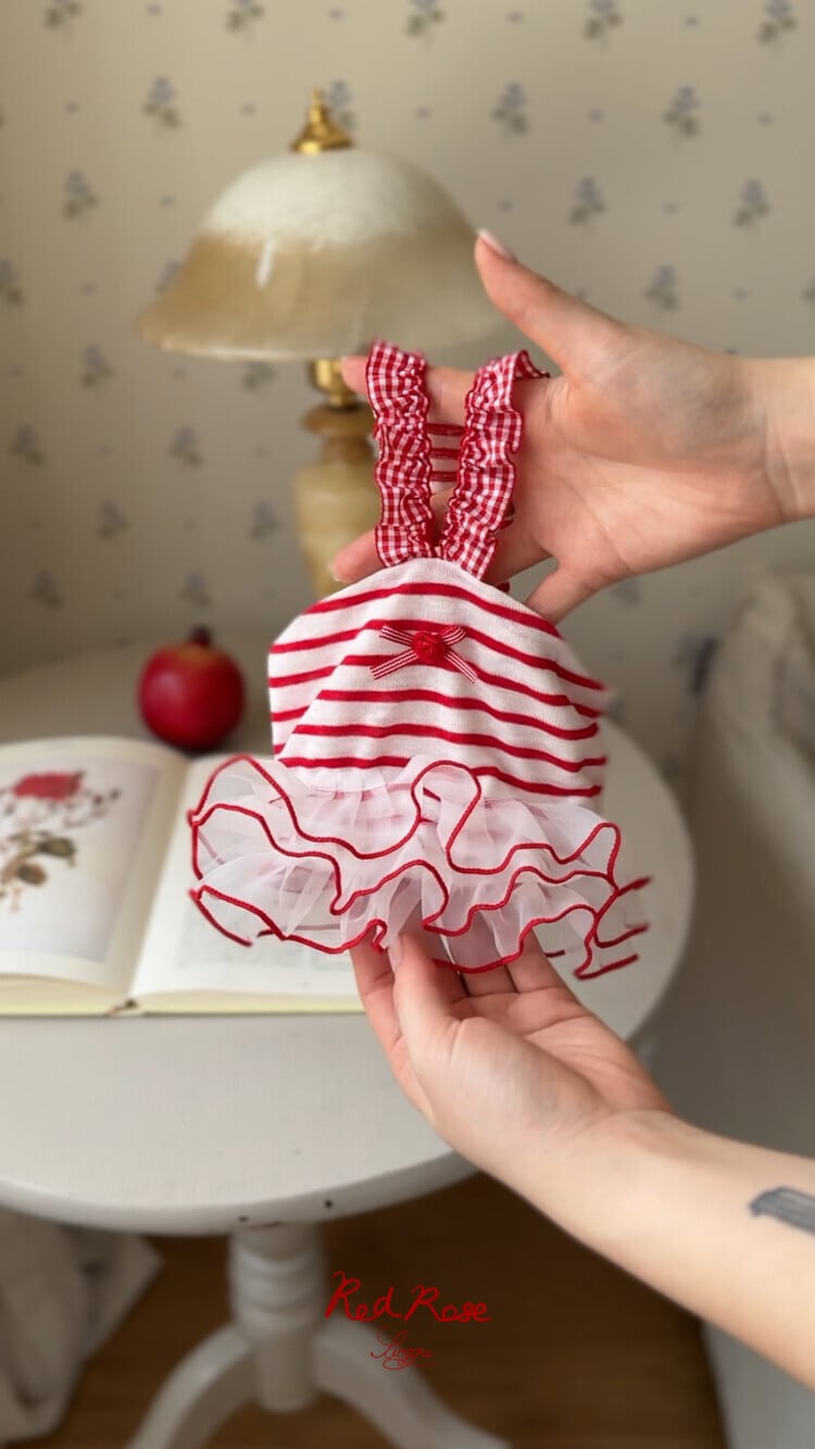 肩紐も心地よく伸びるテンションで仕立てました。スカート部分もボリュームがあるので、