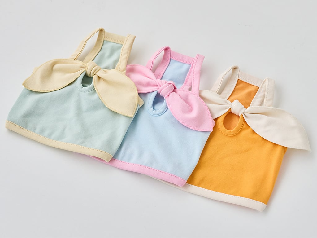 クーリング素材で配色とボウディテールが可愛いクロップTシャツ
