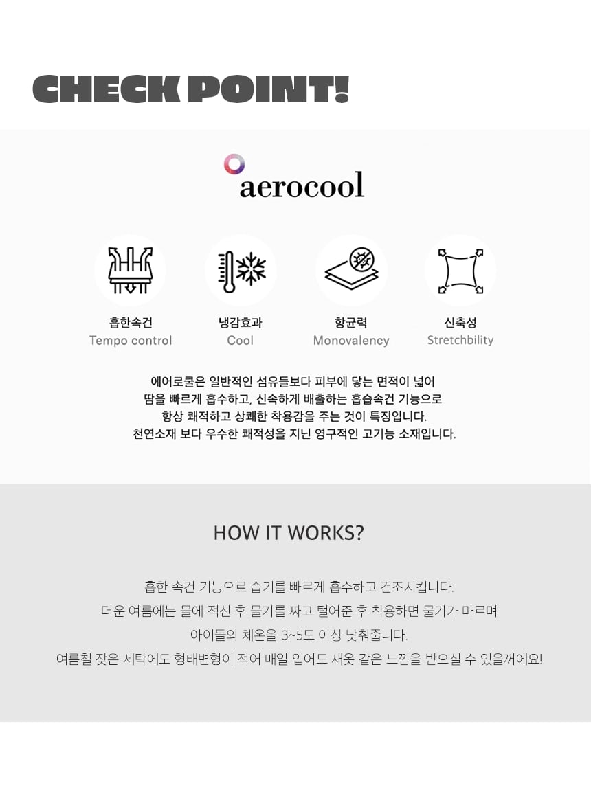 ヒョソン社の機能性素材「AEROCOOL」を使用し、触った瞬間に感じるひんやり感!!