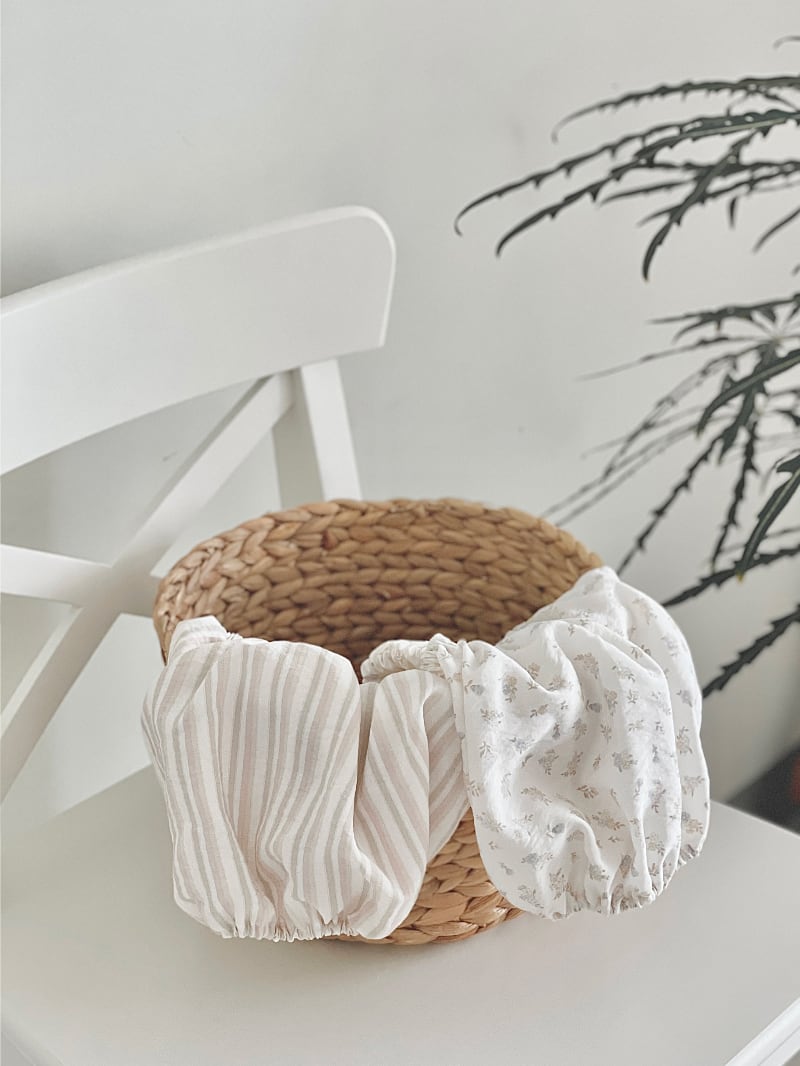 紐、胸端、裾ともゴム糸で仕上げ処理をして