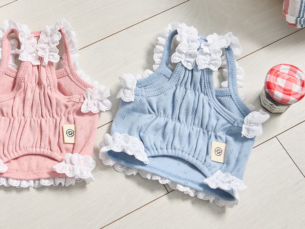 【予約】[EOMUKMARKET] ベアパンチングフリルトップ(ブルーアイレット)