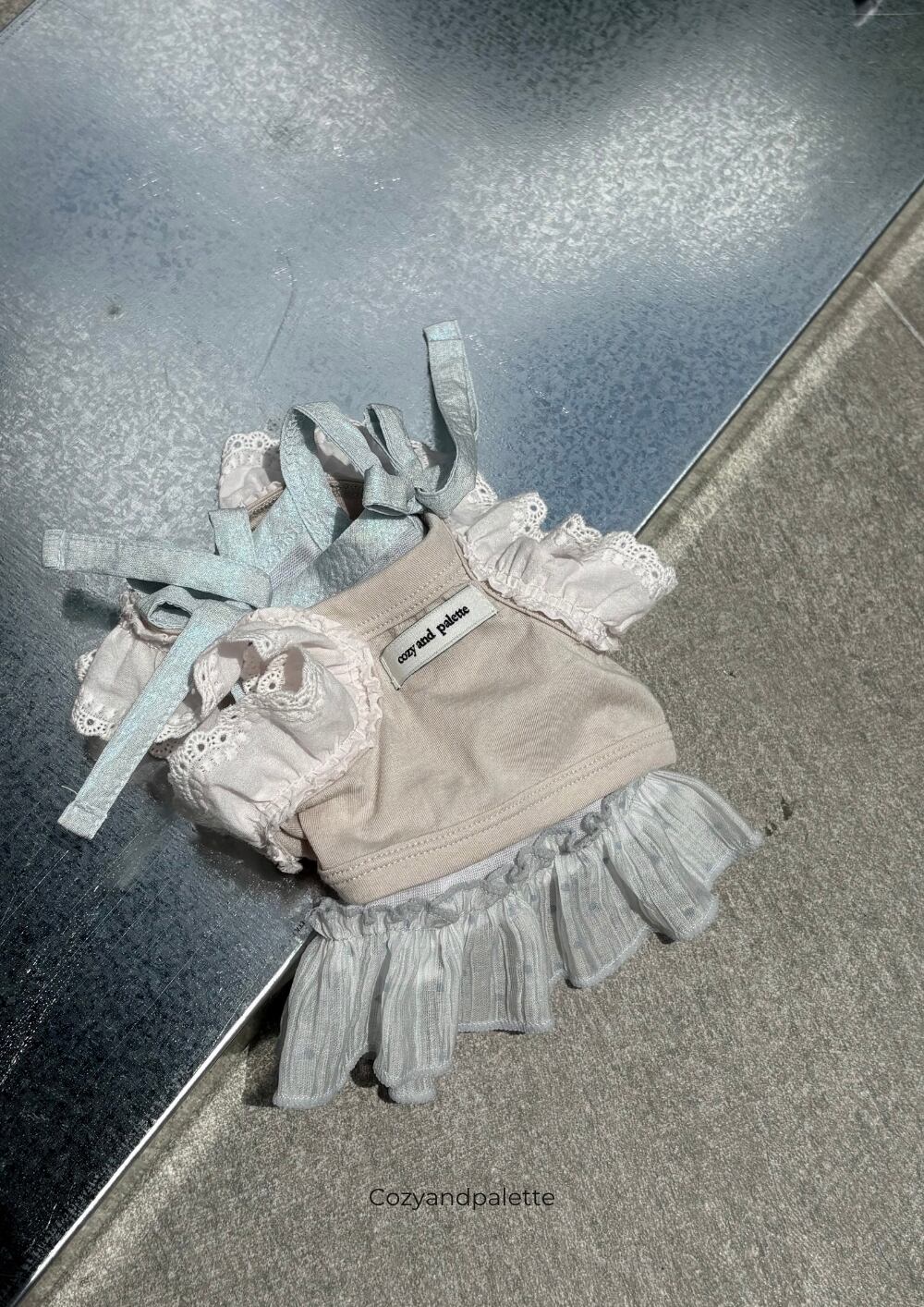 - バストラインやバックラインには、キュートなレースフリル、ミニローズ、ドットリボンなど、異なるディテールをあしらっています。