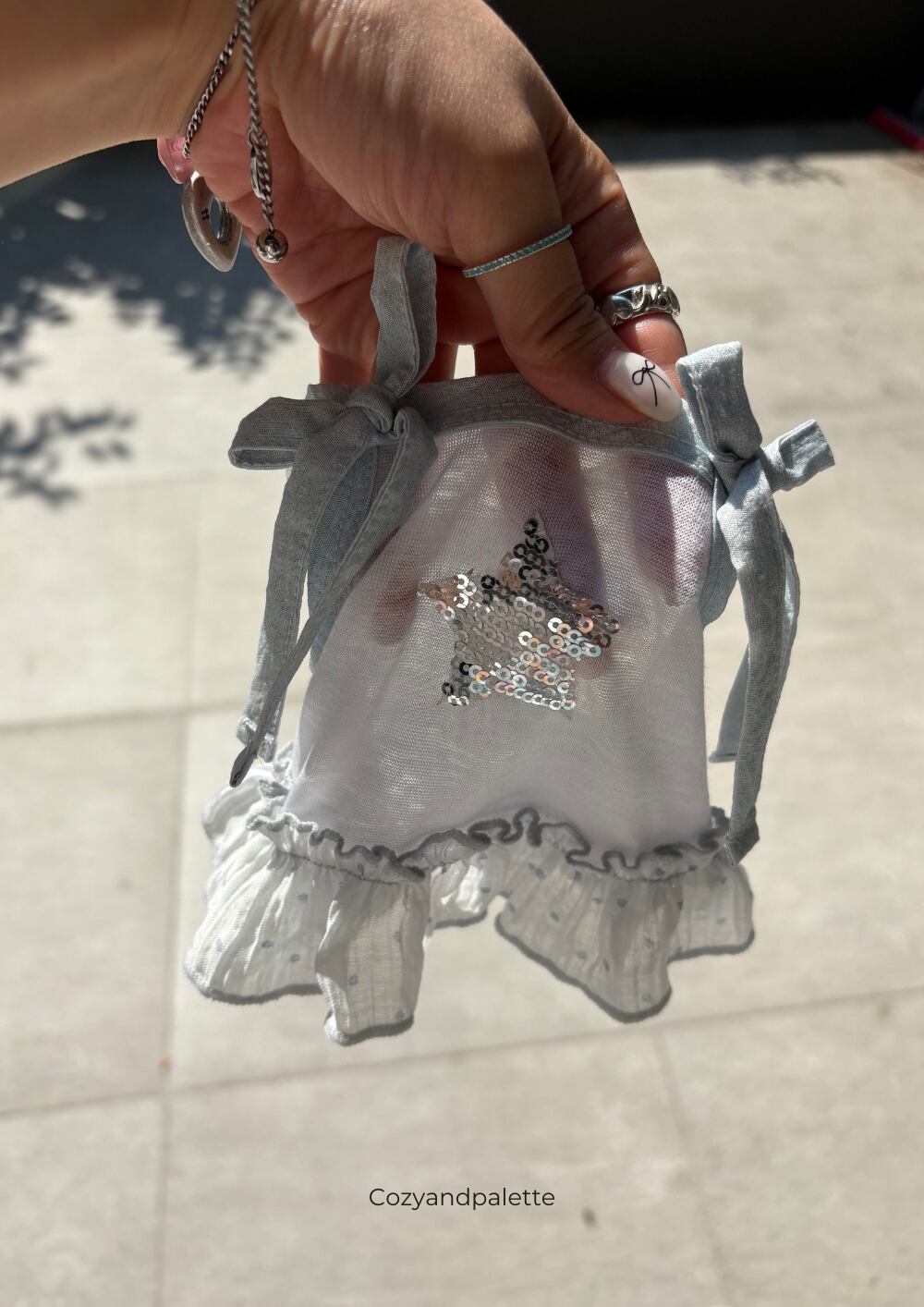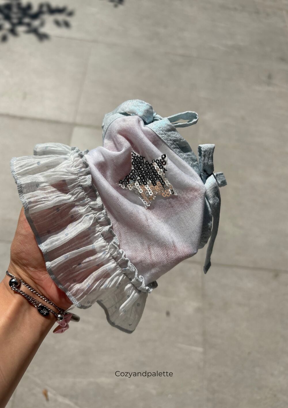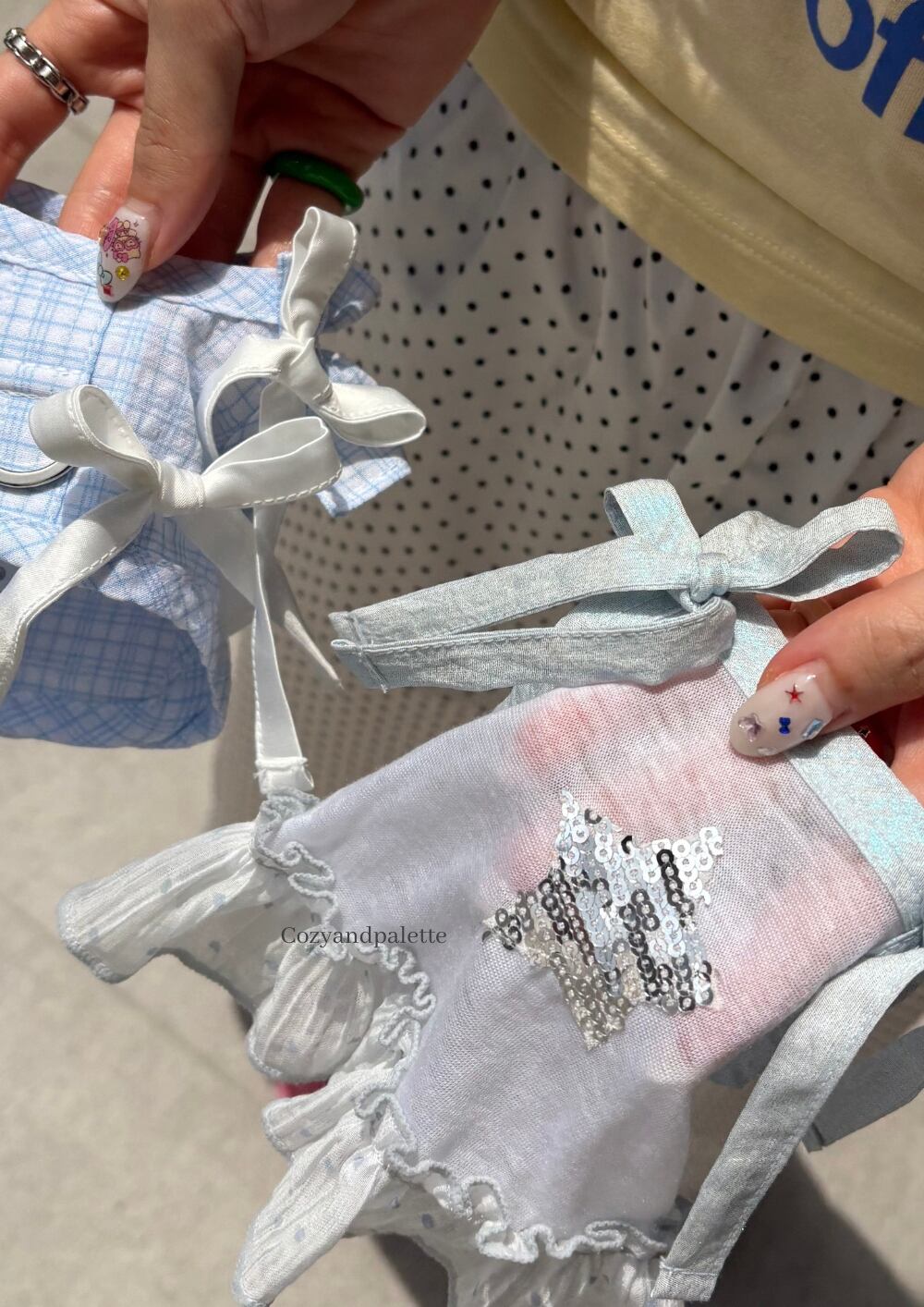 – ミルキースカイはキラキラ輝く星のスパンコール、クリームピンクはキュートなリボンスパンコールが個性的な印象を添えます。