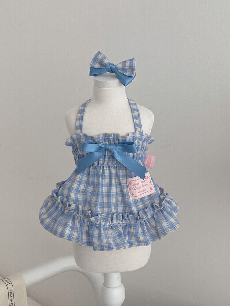 【予約】[cheese n mood]ベビードールチェックワンピース(ブルー)