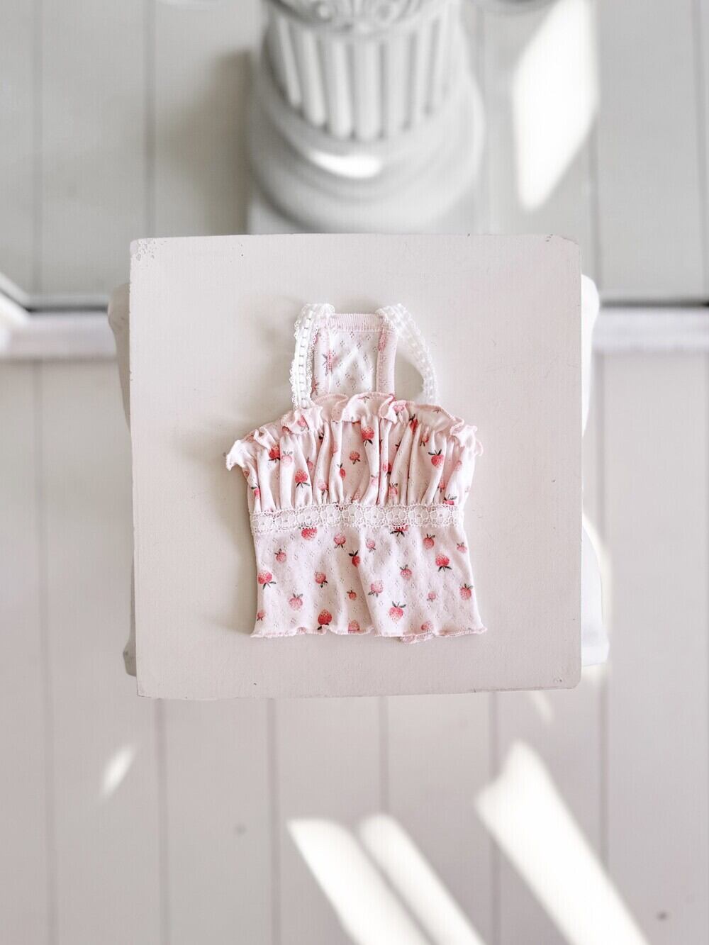 柔らかい生地の上に小さくてかわいいイチゴがふんわりと落ち着きました。