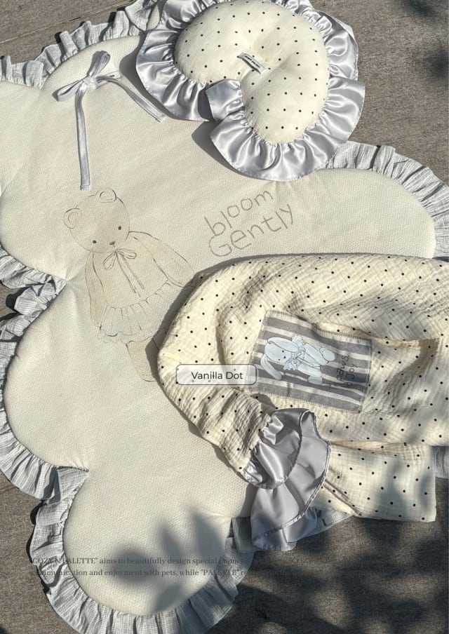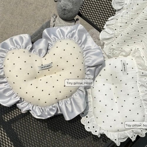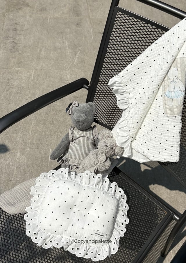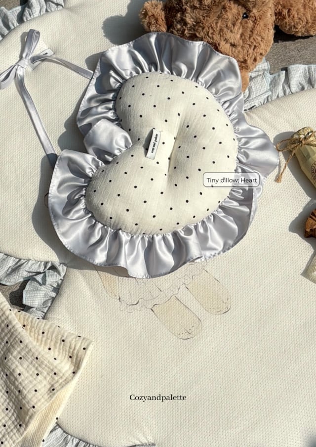 - ドット柄の生地とフリルフリルで可愛らしいムードを演出