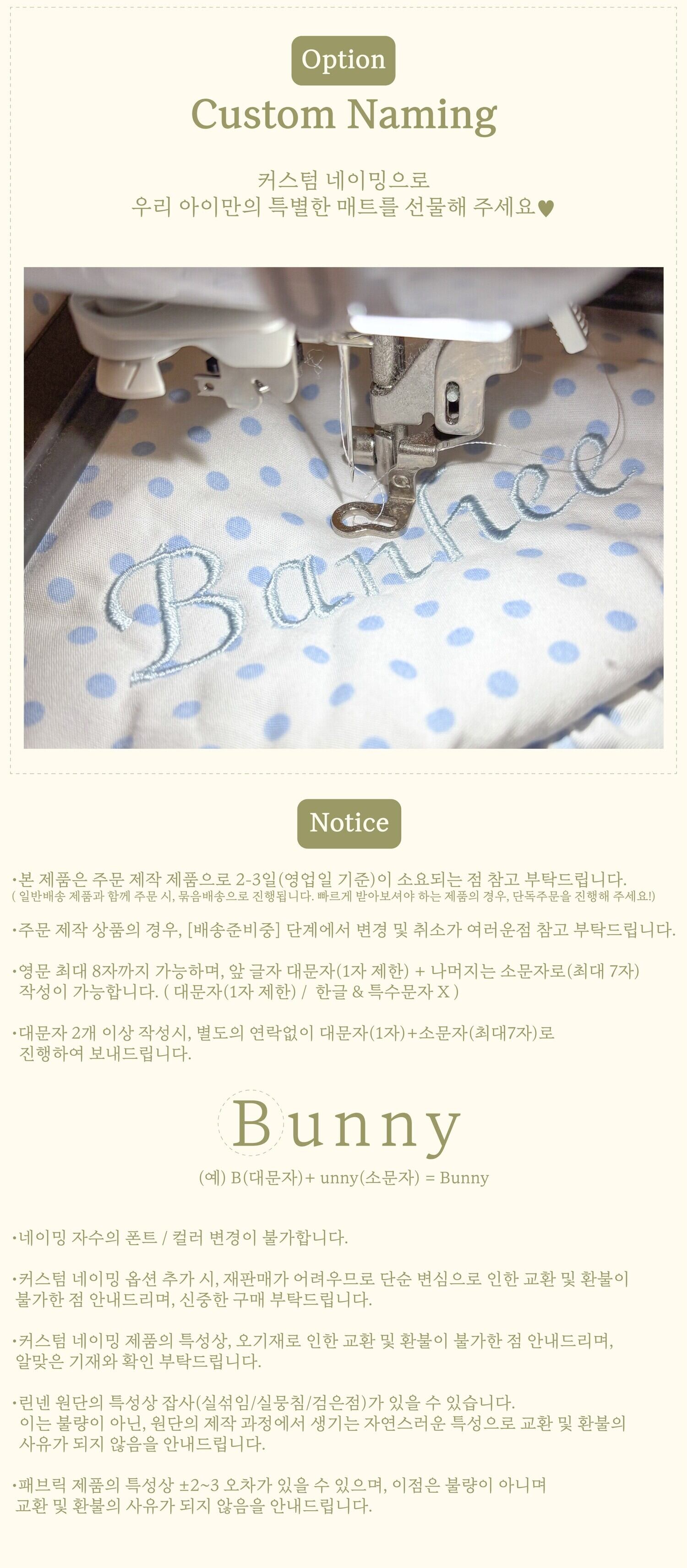 ·カスタムネーミングオプションを選択しない場合、kiki&niniレタリングロゴ刺繍でお送りいたします。