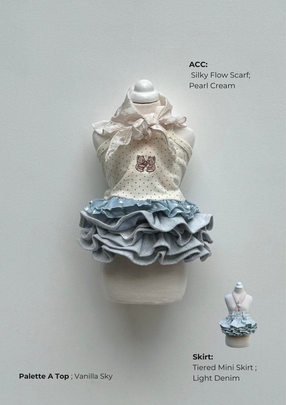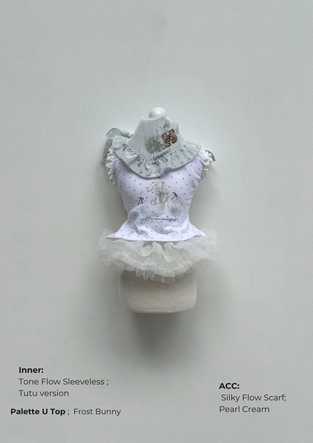 - ネックラインに自然に流れるフリルのディテール。