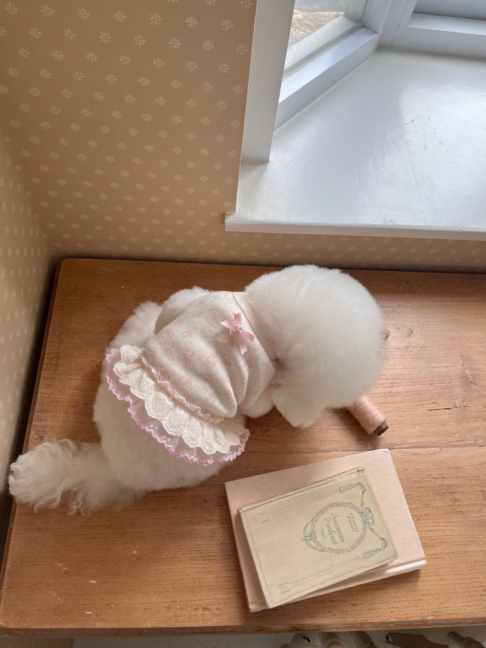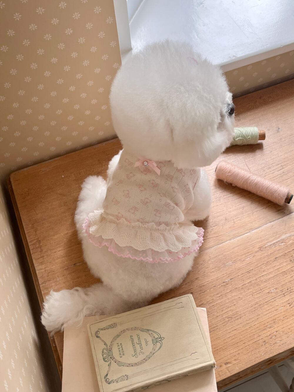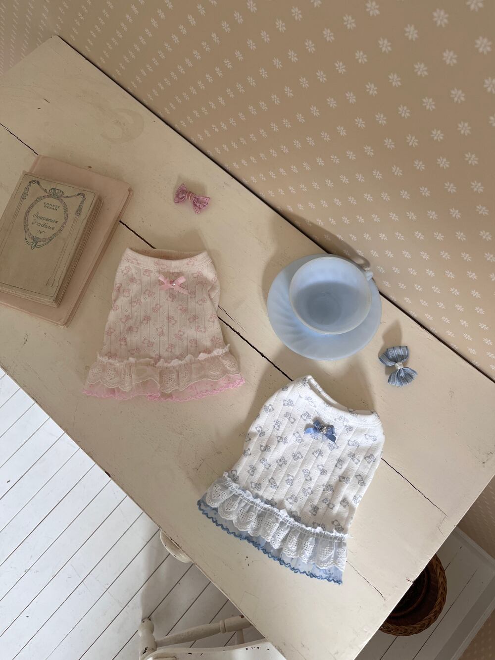 背中に小さなリボン飾りを加え、ほのかで愛らしいポイントを与えてくれます