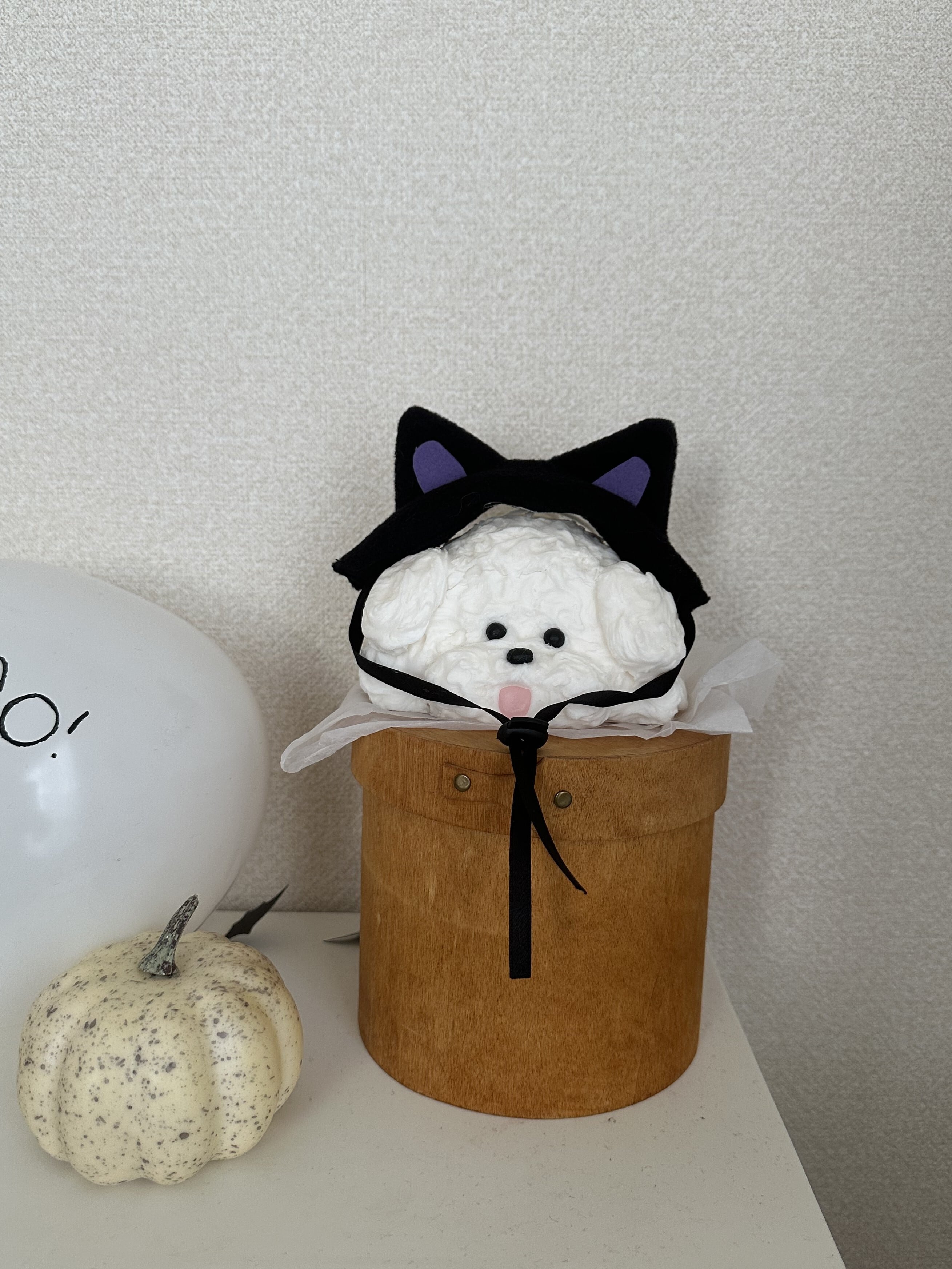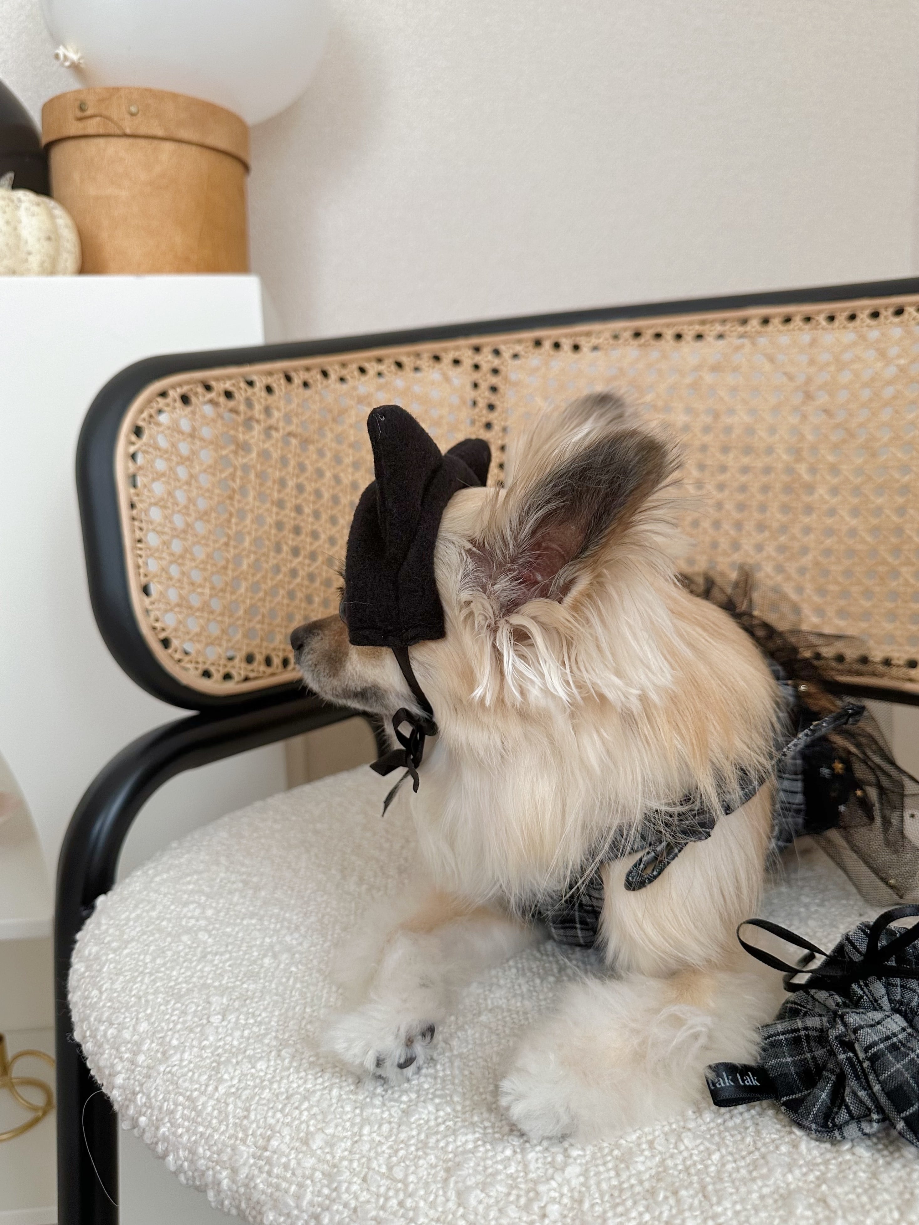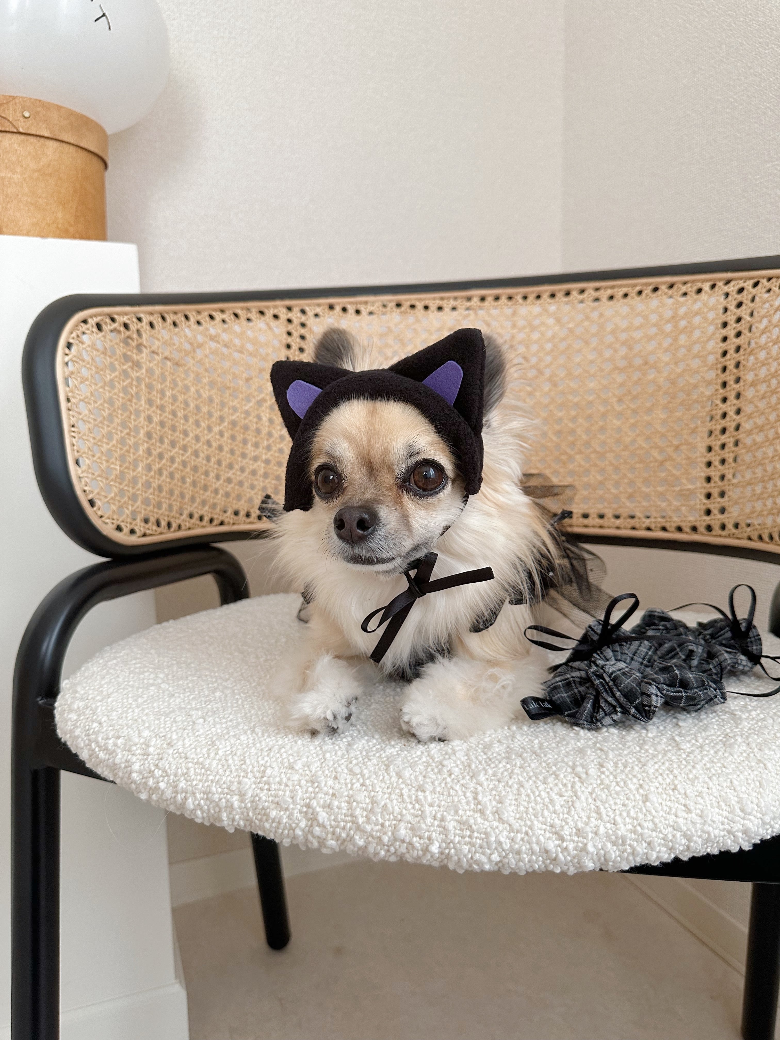 顎下でリボン結びをしてあげると