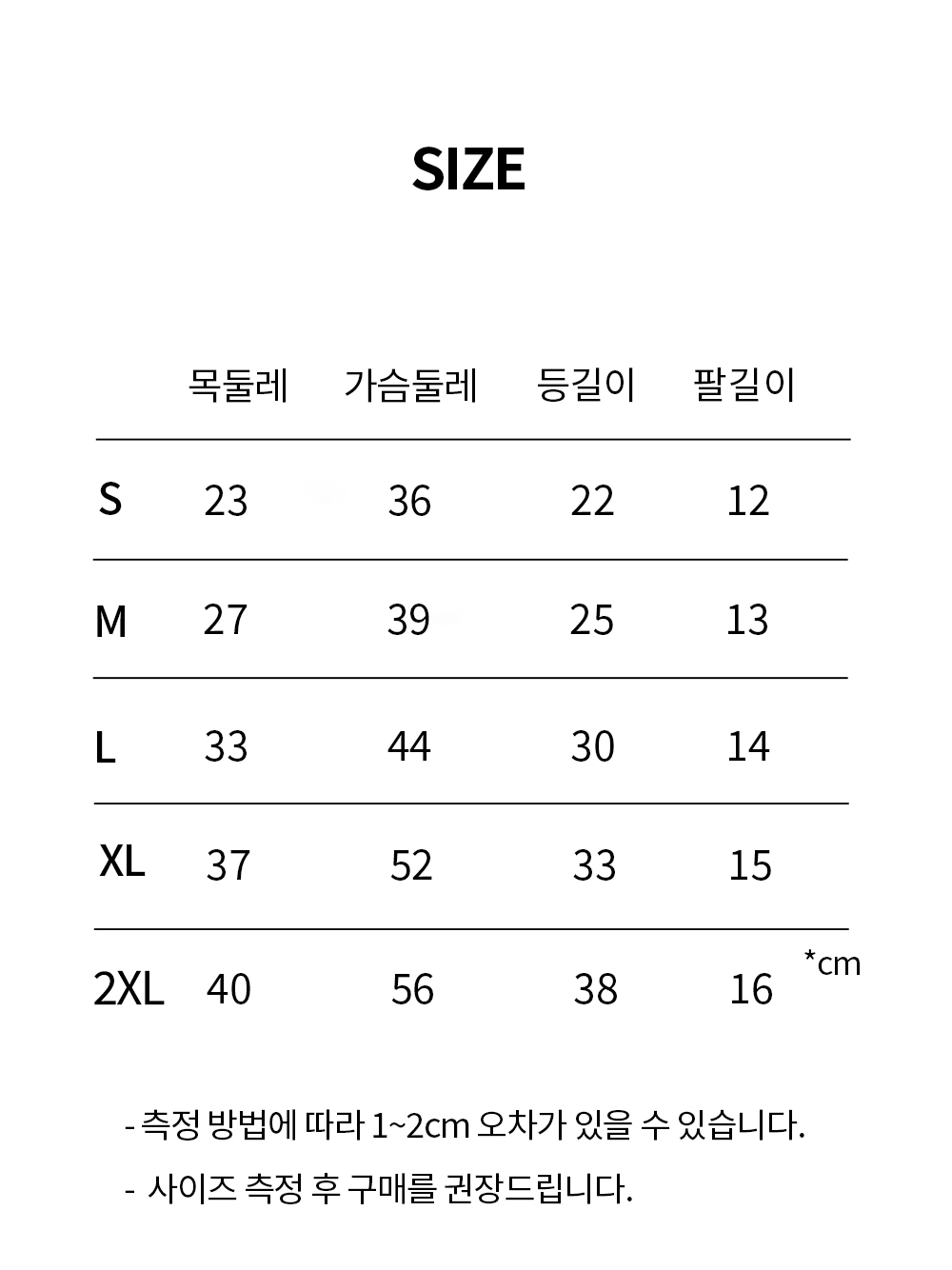 2XL 首回り40cm 胸囲/56cm 着丈/38cm 袖丈/16cm
