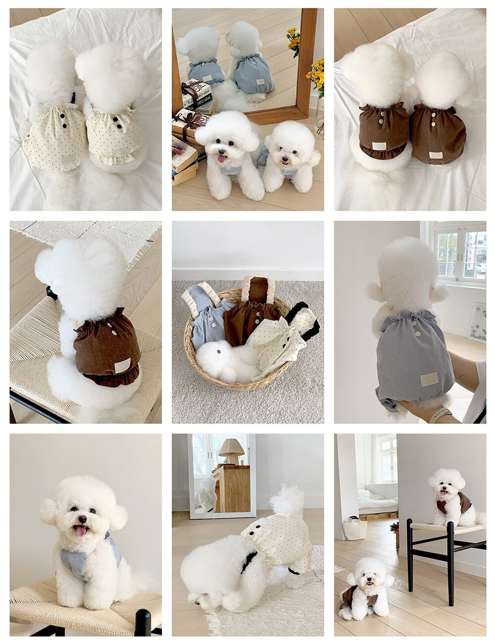 体重3.2kg、胸囲36cm、着丈26cm 首回り24cm:Mサイズ着用
