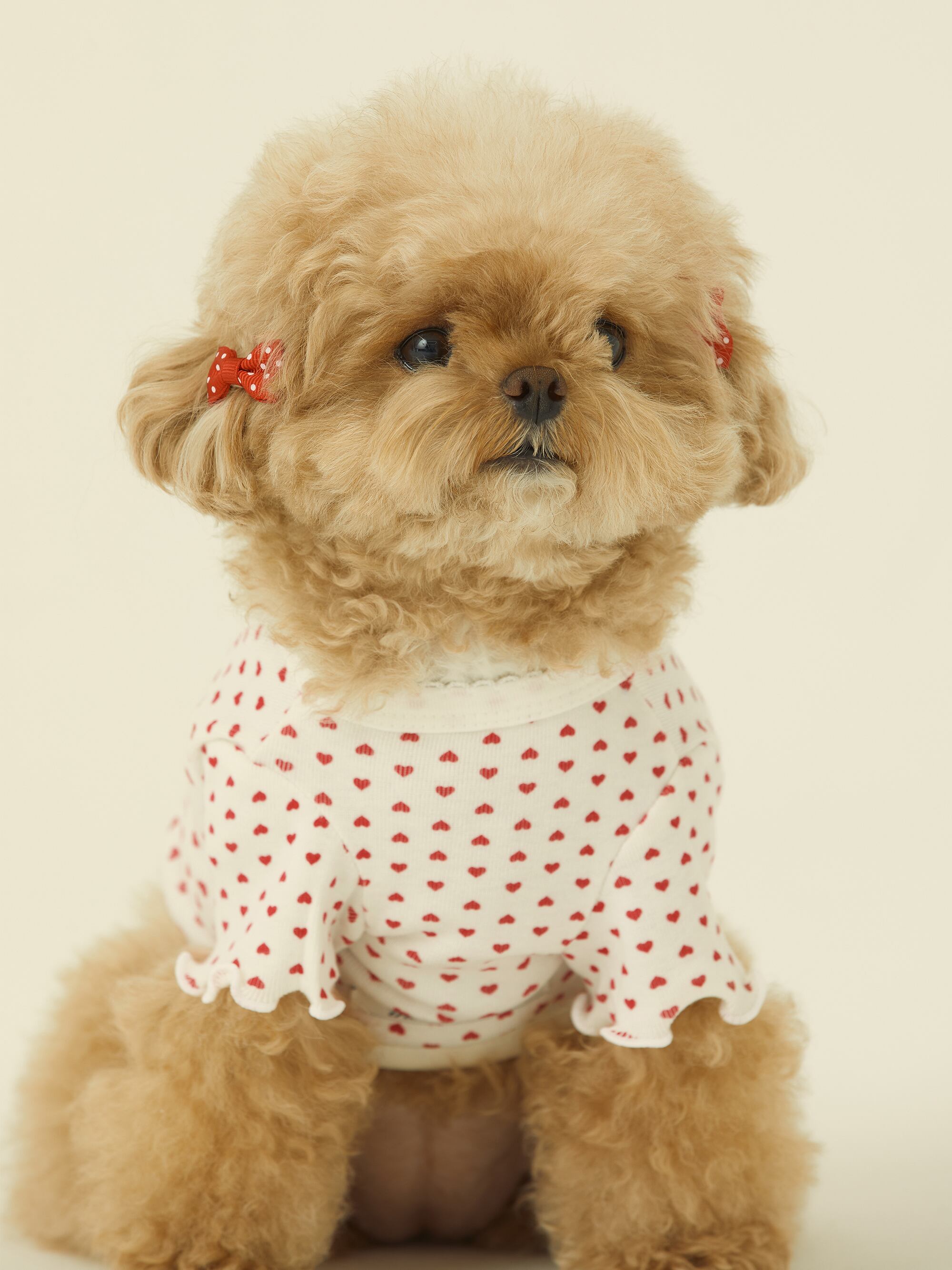 ・愛らしいレッドハート柄プリント