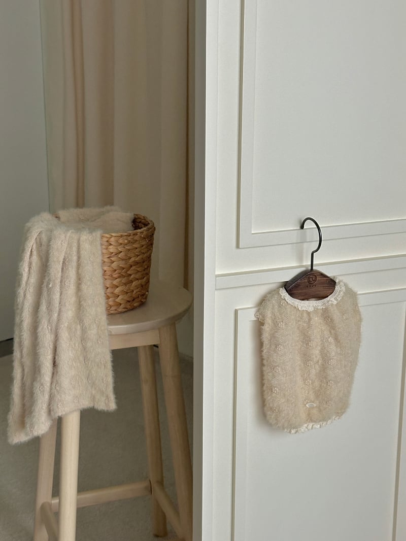 ヘアリーな質感とかわいい花刺繍の生地で作られた