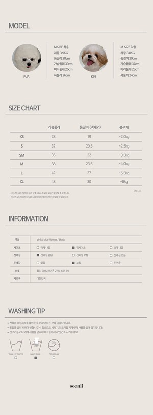 L 着丈/27cm 胸囲/42cm 推奨体重/~5.5kg