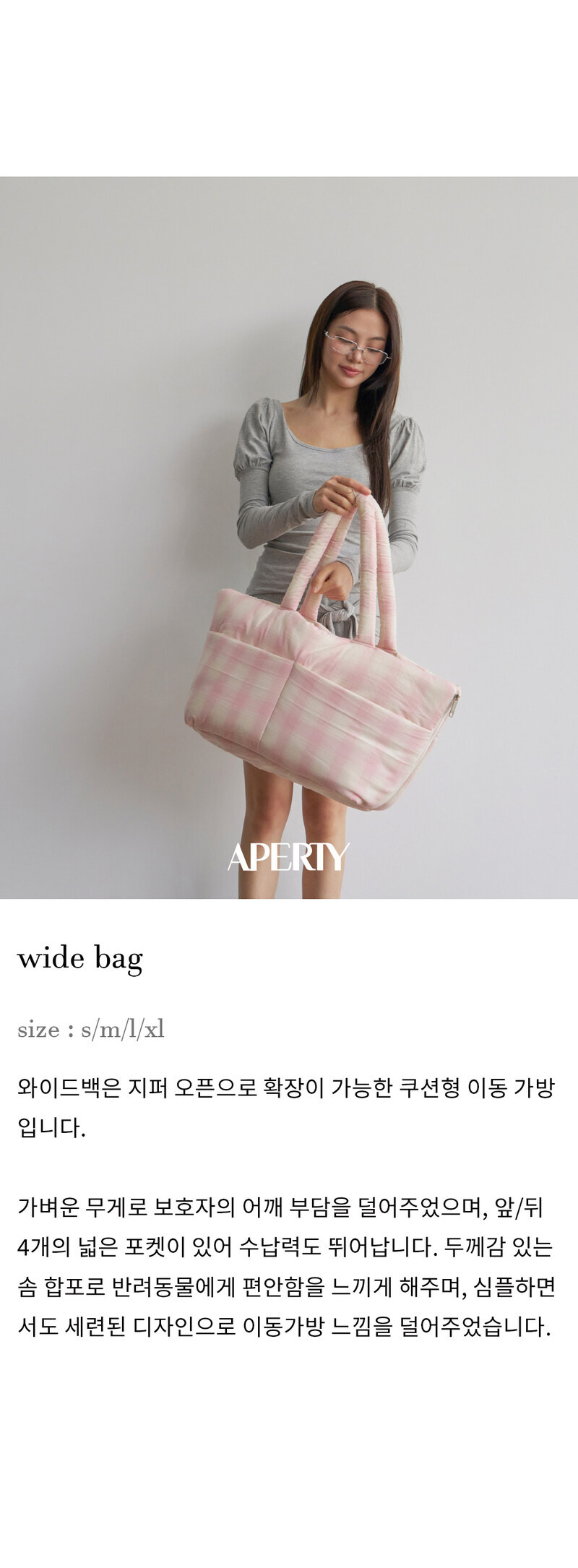 ワイドバッグはファスナーオープンで拡張が可能なクッション型キャリーバッグとなります。
