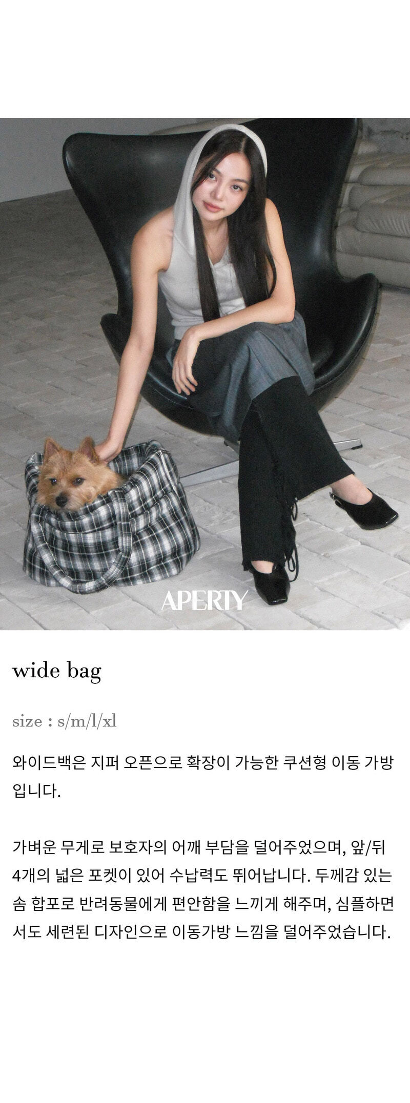 ワイドバッグはファスナーオープンで拡張が可能なクッション型キャリーバッグとなります。