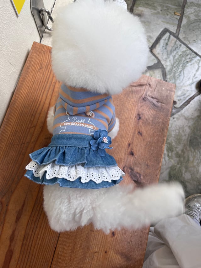 【予約】[Hi yeboo] Denim Flower Skirt (Light Blue)