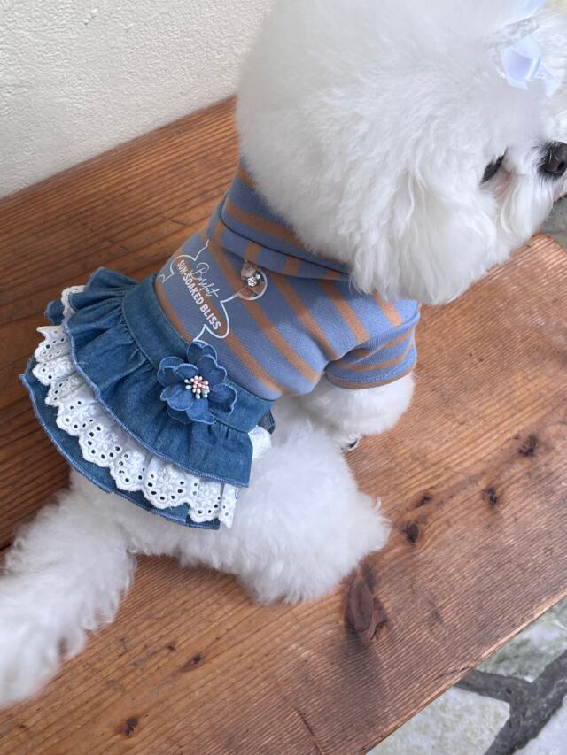 【予約】[Hi yeboo] Denim Flower Skirt (Dark Blue)