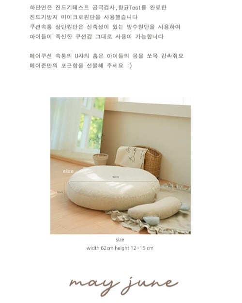 底面には防ダニマイクロファブリックを使用し、ダニ検査、気孔検査、抗菌検査に合格しています。クッションインナーの上部には伸縮性のある防水生地を使用し、お子様にも柔らかなクッション感をお楽しみいただけます。