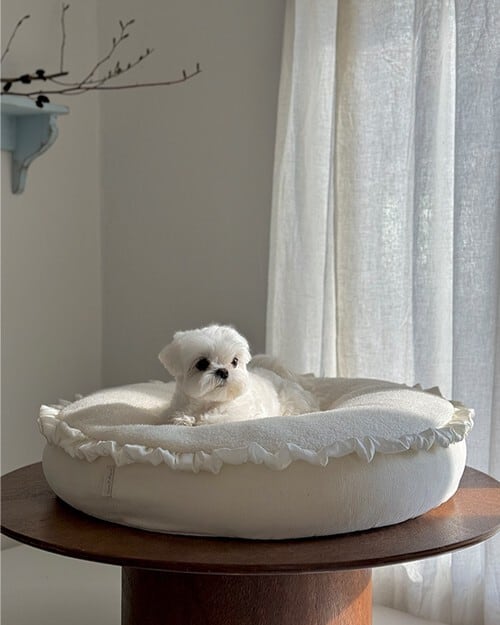 上品なラッフルデザインとふんわりとした色合いが引き立つクリームカバー。