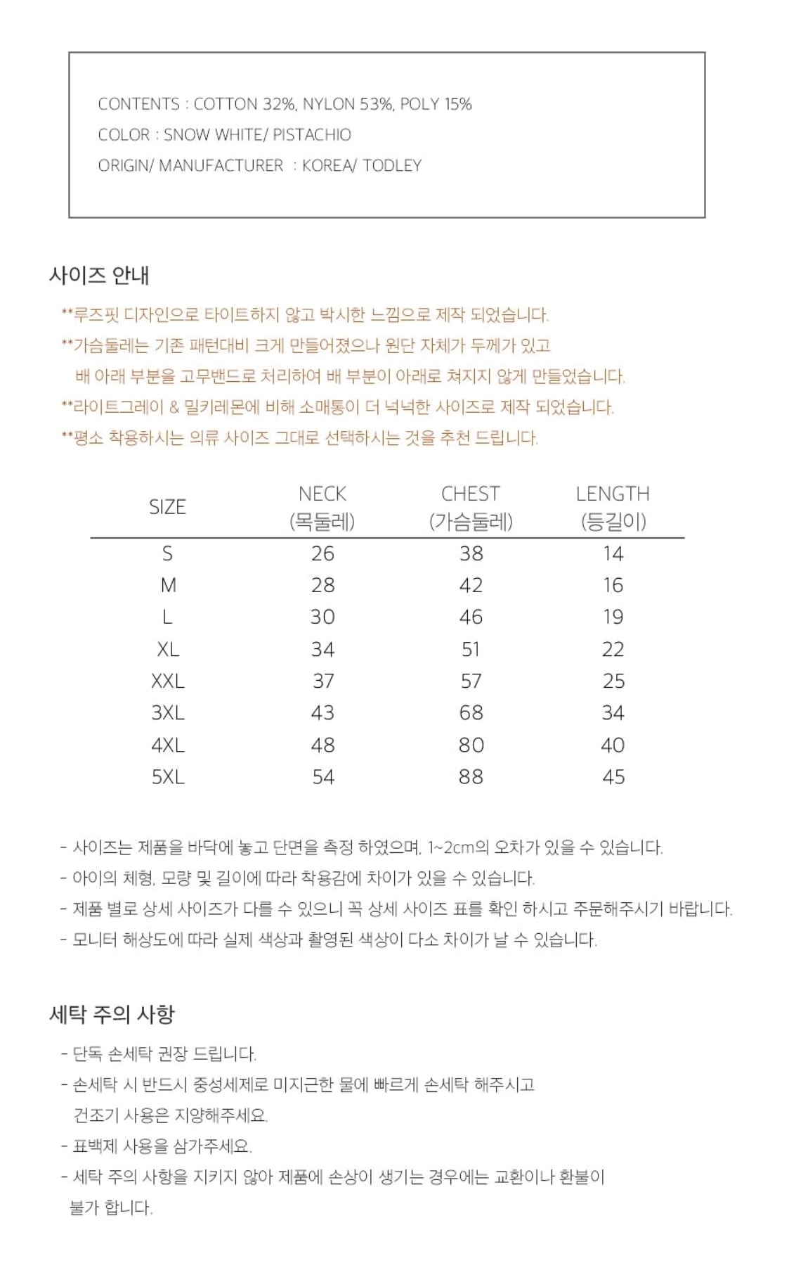 - 洗濯注意事項を守らないため、製品に損傷が生じる場合は交換や返金が不可能です。