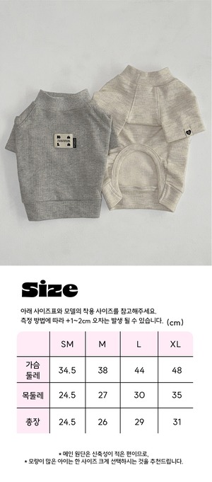 SM 胸囲34.5 首回り24.5 着丈24.5