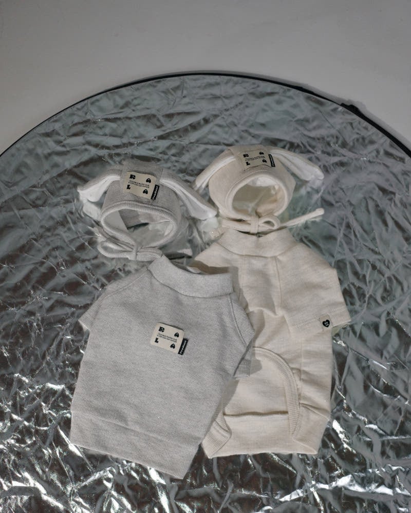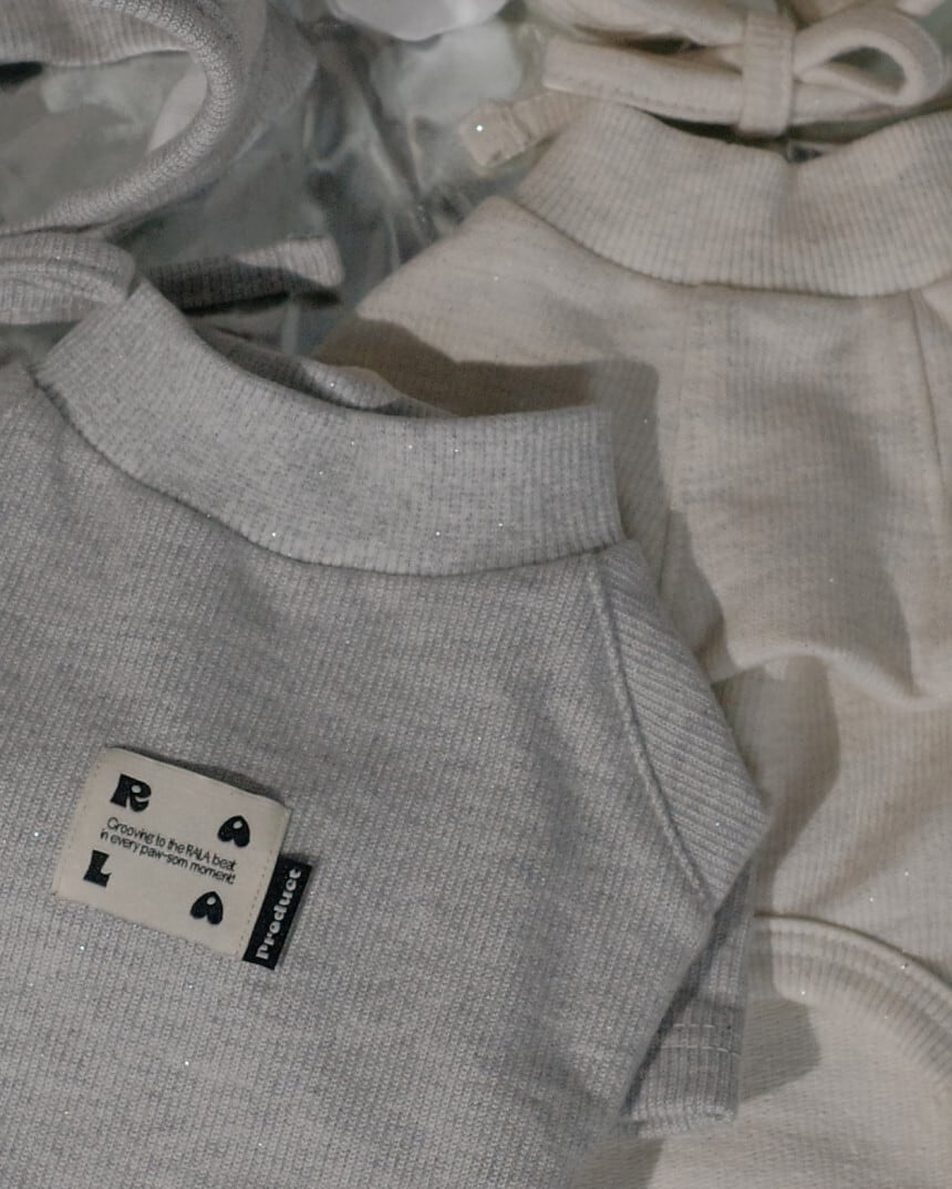 リブニットのメランジカラーがさりげない魅力を添えています。