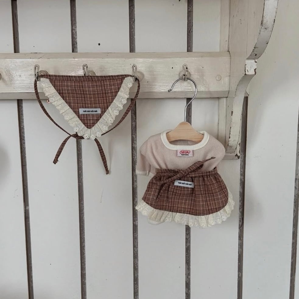 【予約】[tak!tak!tak!tak!] Antique Check Series (Heart Cushion Bib) /ネーム刺繍あり/ビブのみ