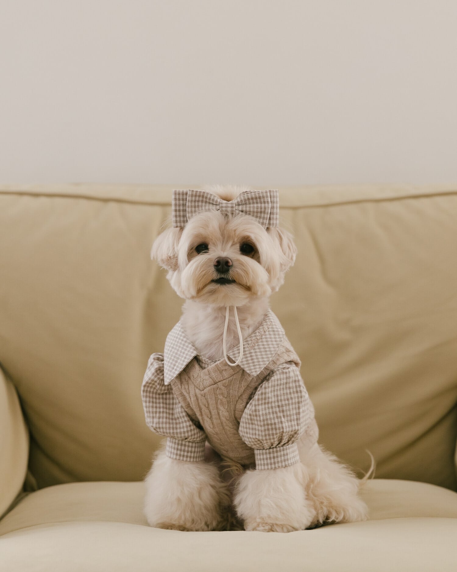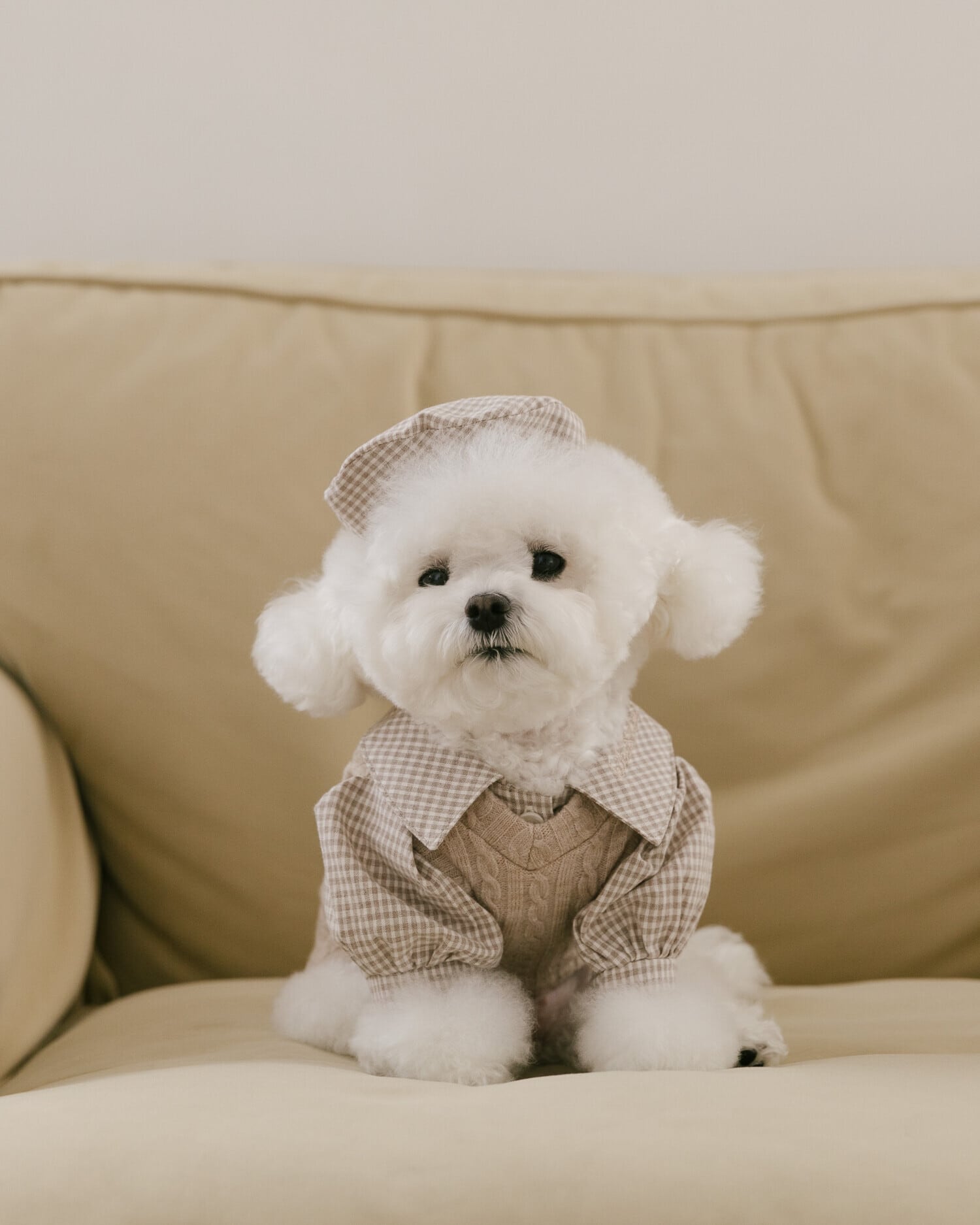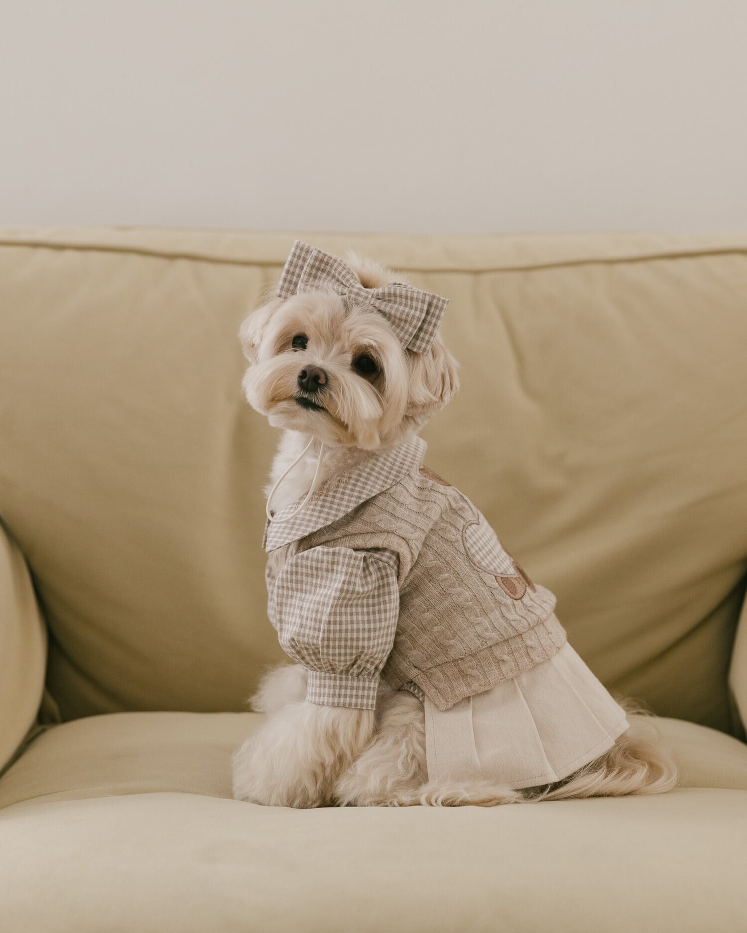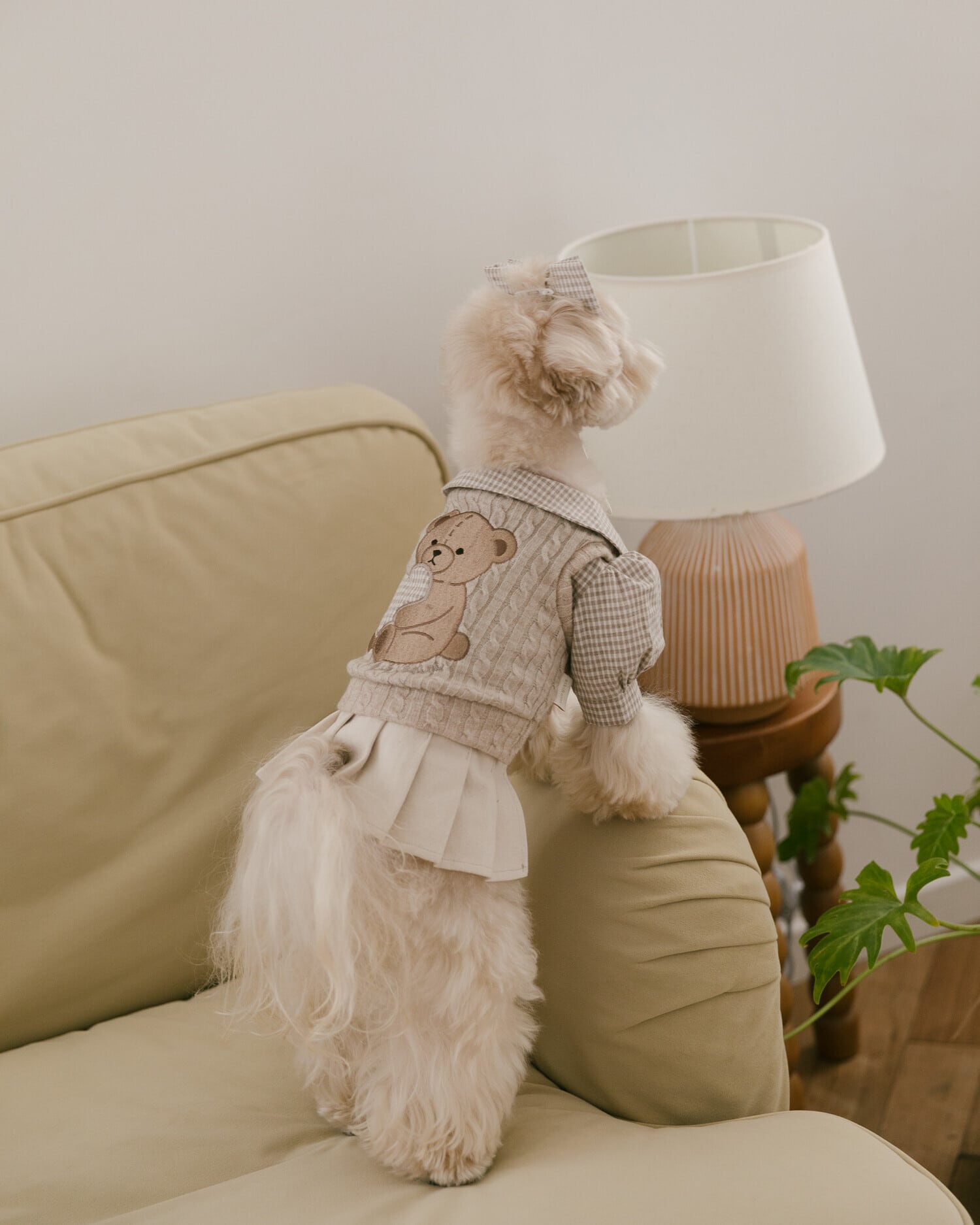 ニットベスト、シャツ、シャツワンピース、ベレー帽、リボンヘアバンドは別売りです。