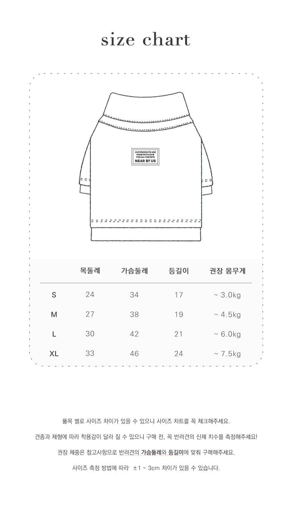 S 首回り/24cm 胸囲/34cm 着丈/17cm 推奨体重-3kg
