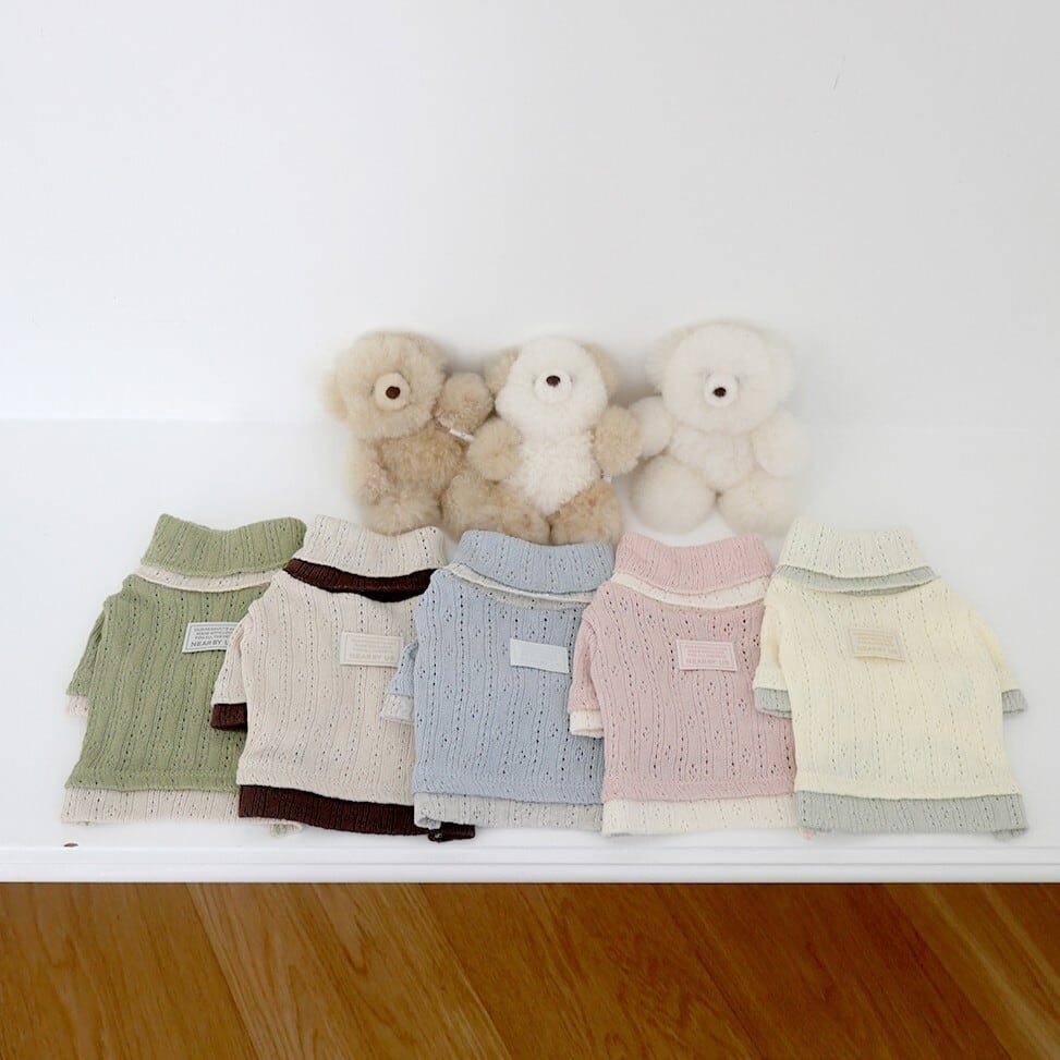 【予約】[near by us] pointelle knit top(melange blue)