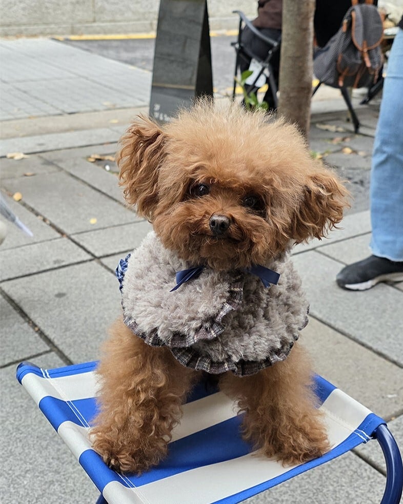 つまみ(アプリプードル) 首周り17cm / 体重2kg / Sサイズ着用 (ゆとりのあるフィット)