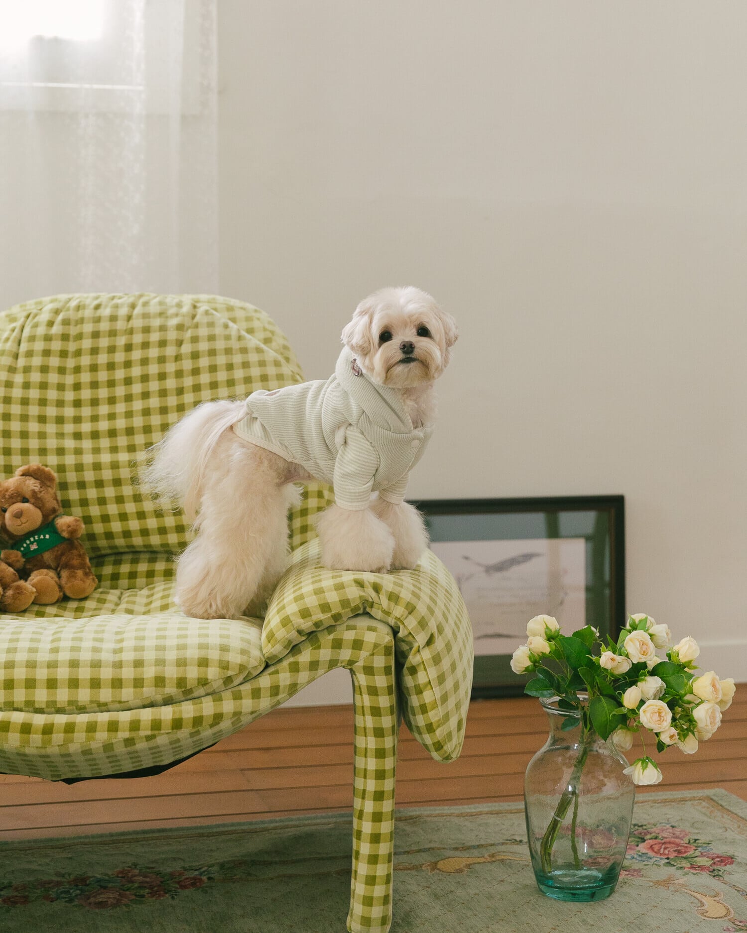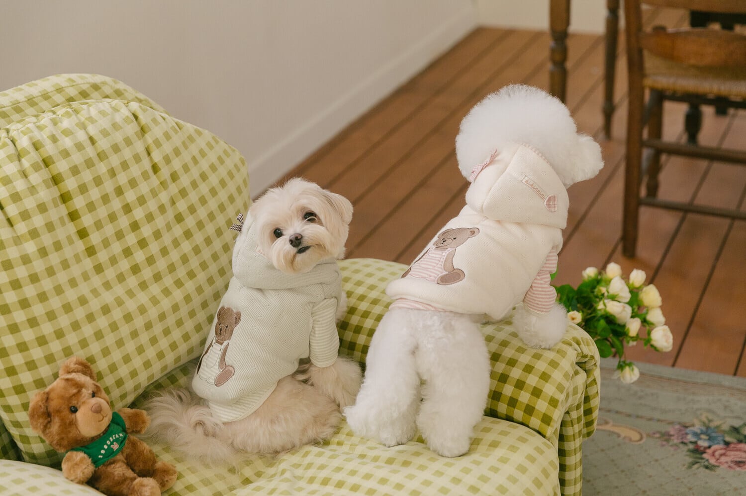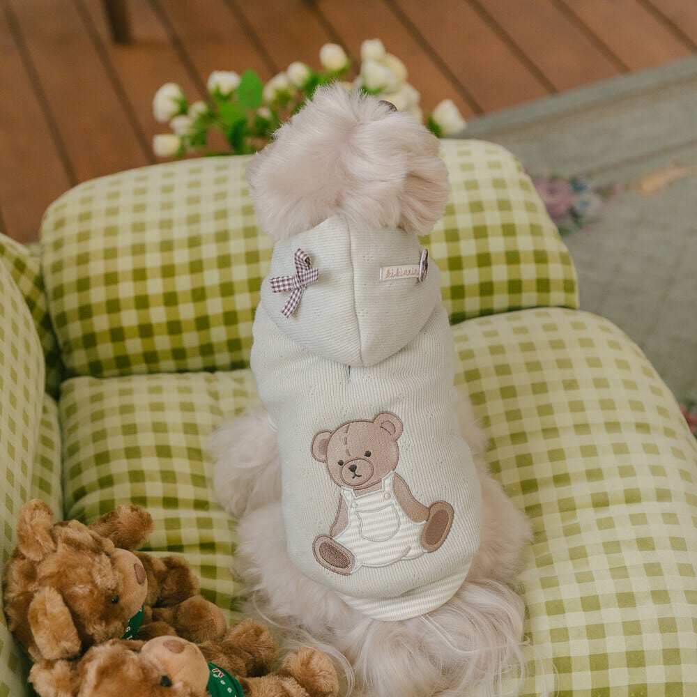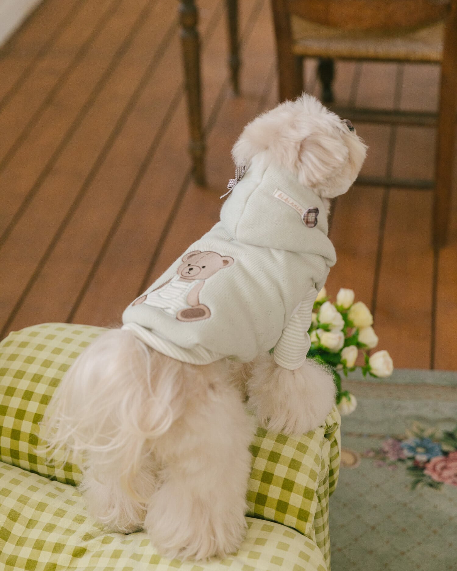 フードにはギンガムチェックのリボンとハートボタンがあしらわれ、