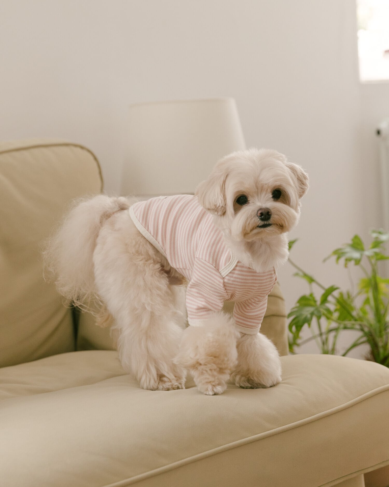 やわらかなパステルトーンのストライプパターンと、