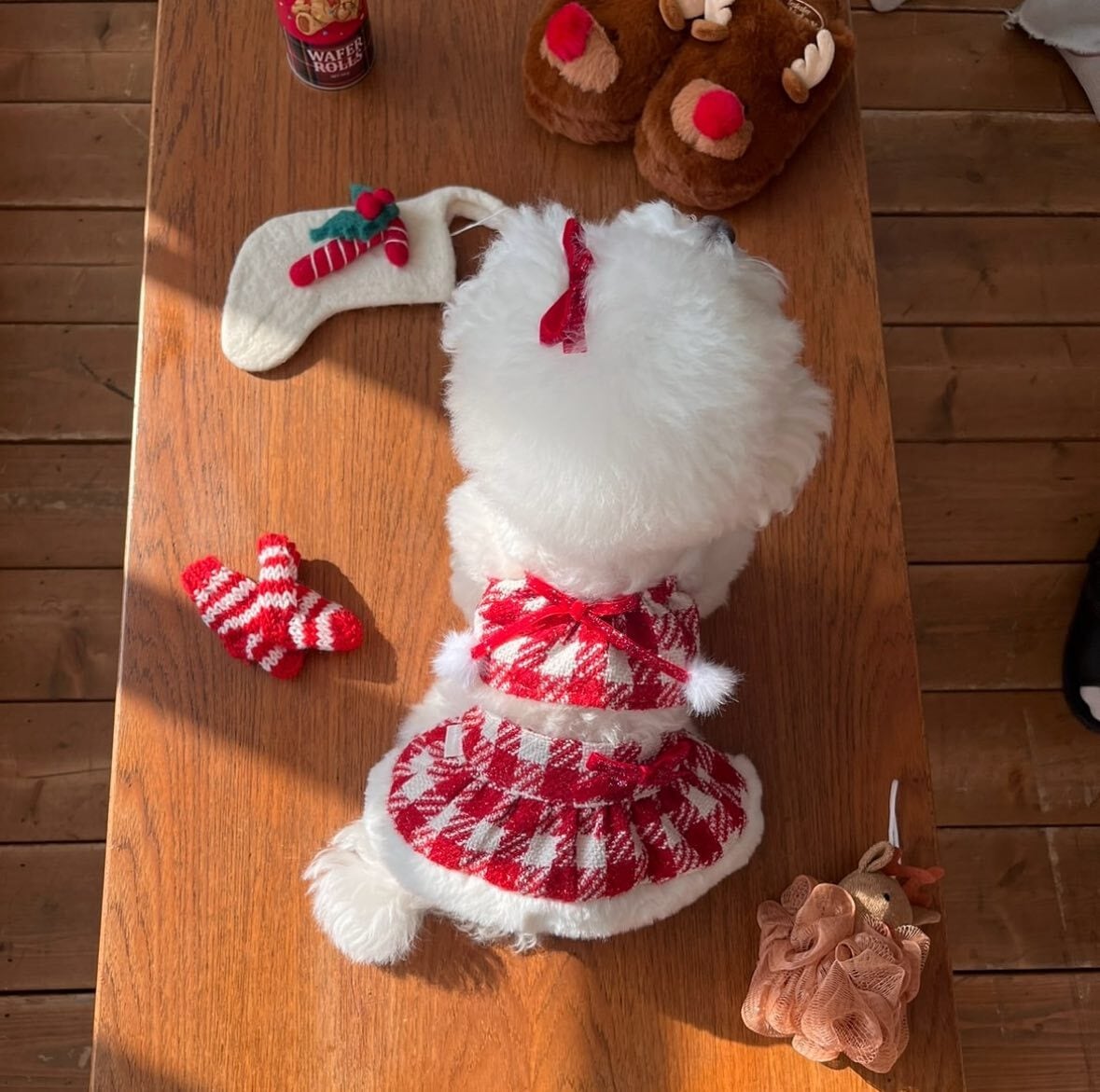 クリスマスムードいっぱいのツイードクリスマスワンピース&ケープ