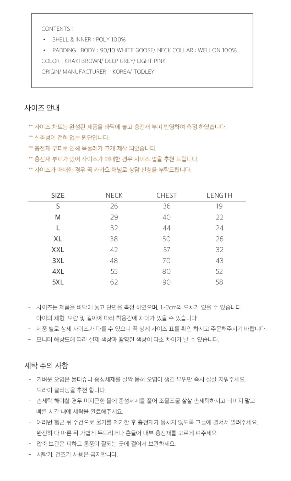 ** サイズチャートは完成した製品を床に置き、詰め物の体積を反映して測定しました。