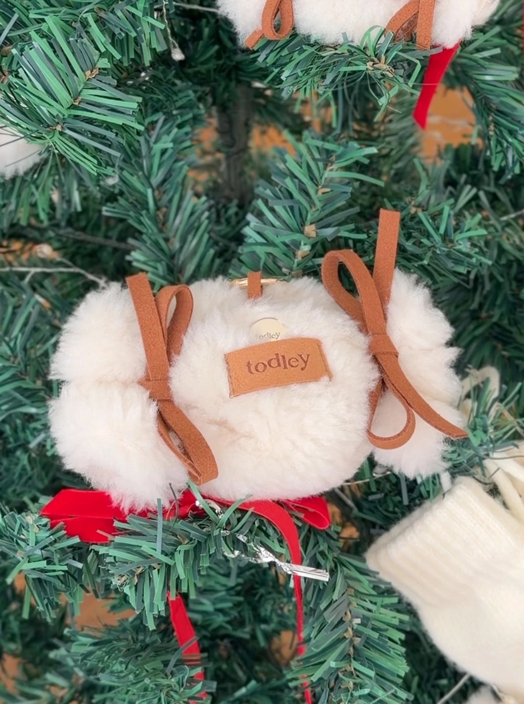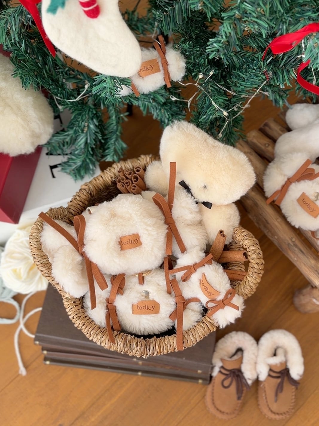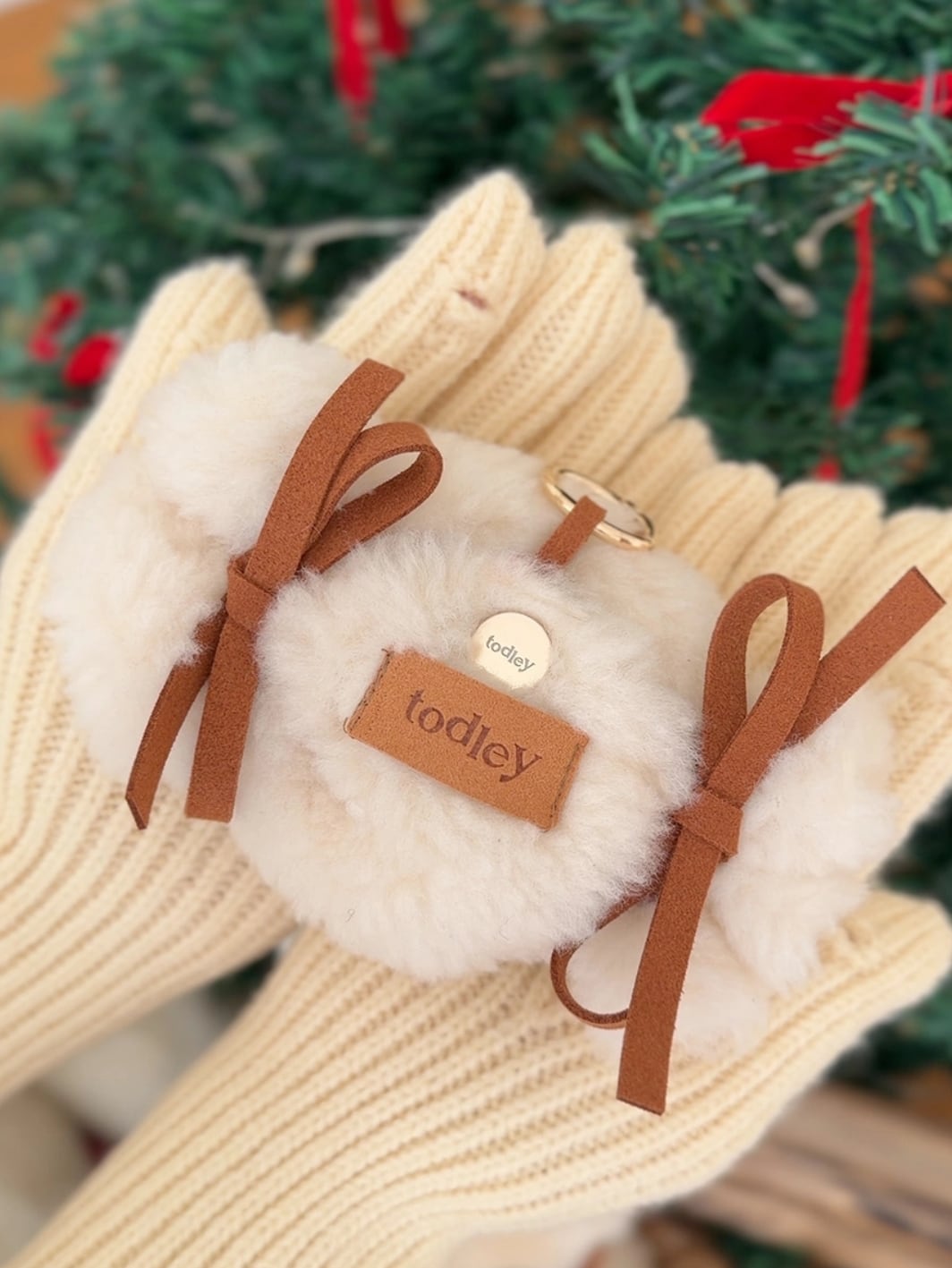 ふわふわしたウールのテクスチャーとリボンのポイント、