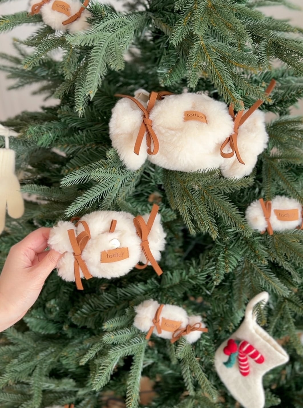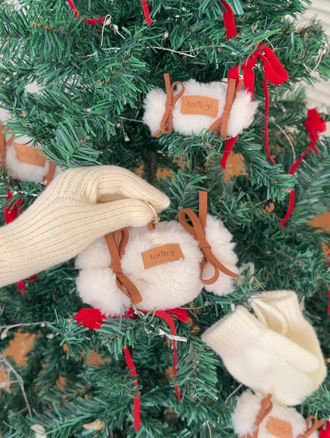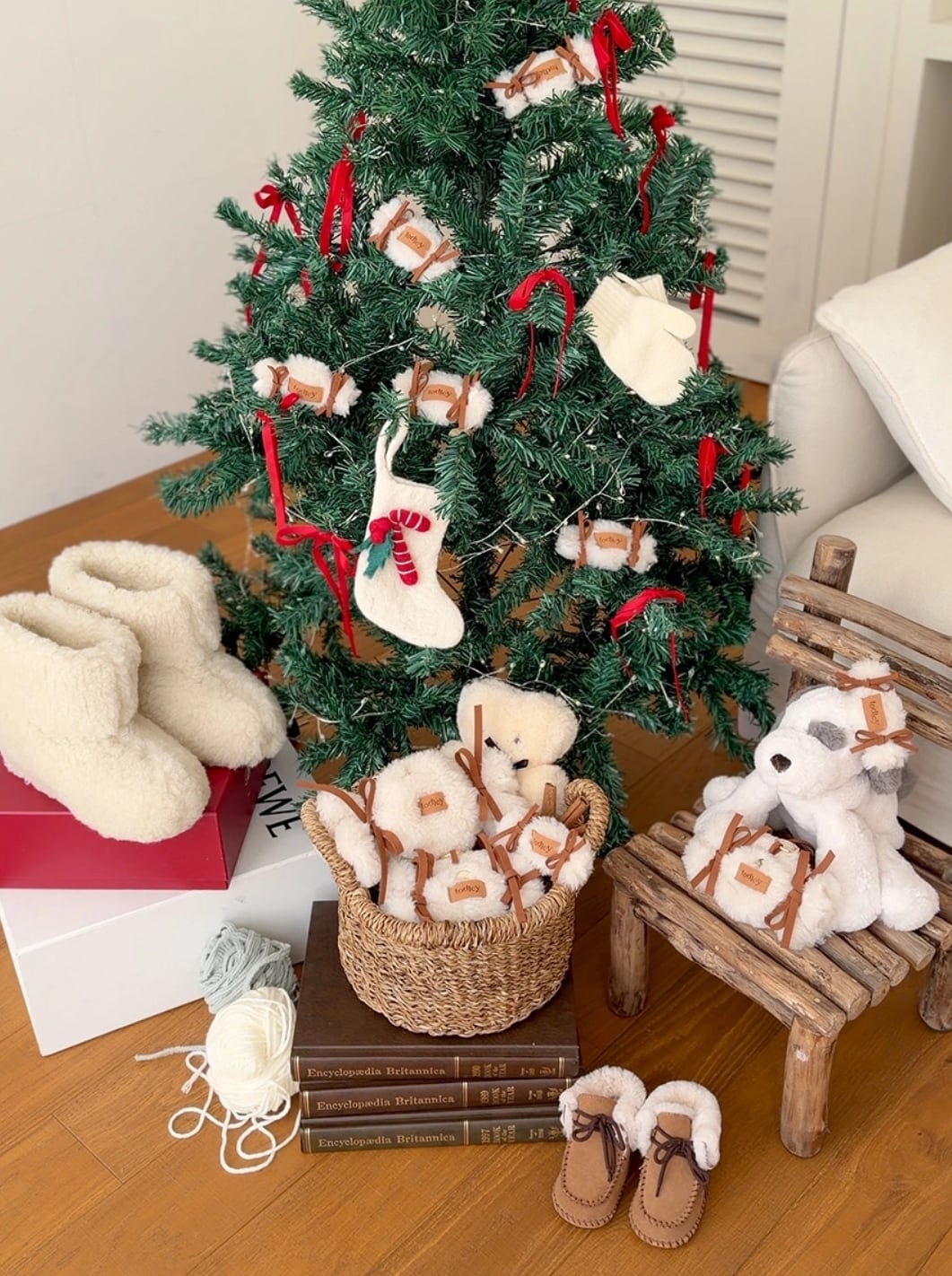 ふわふわしたウールのテクスチャーとリボンのポイント、