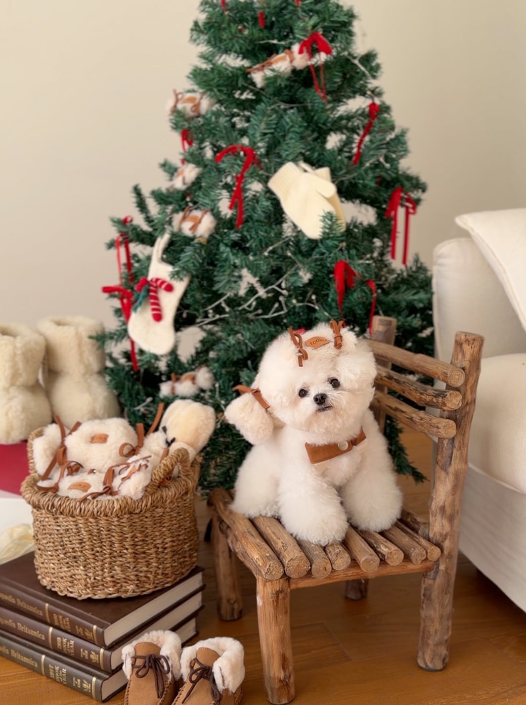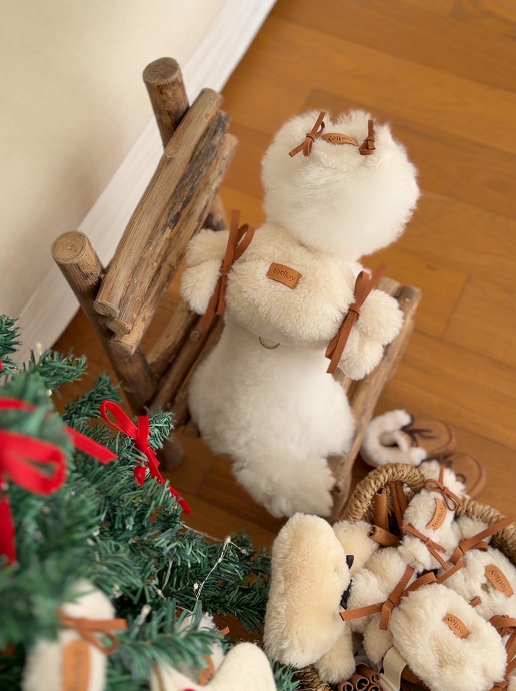 ふわふわしたウールのテクスチャーとリボンのポイント、