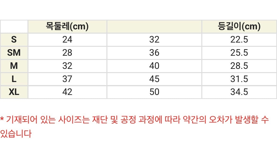 SM 首回り/28cm 胸囲/36cm 着丈/25.5cm
