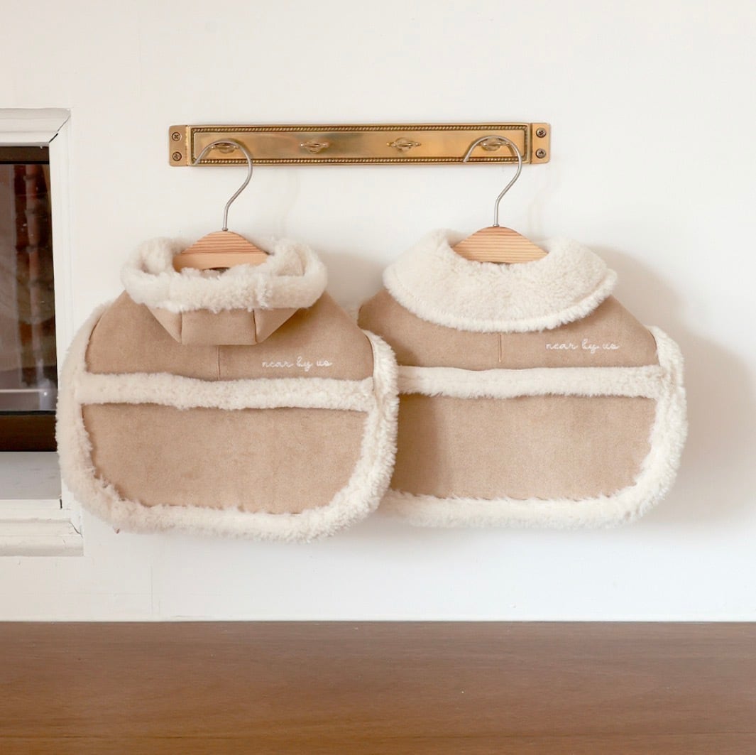 【予約】[near by us ]shearling poncho (hoody/beige)