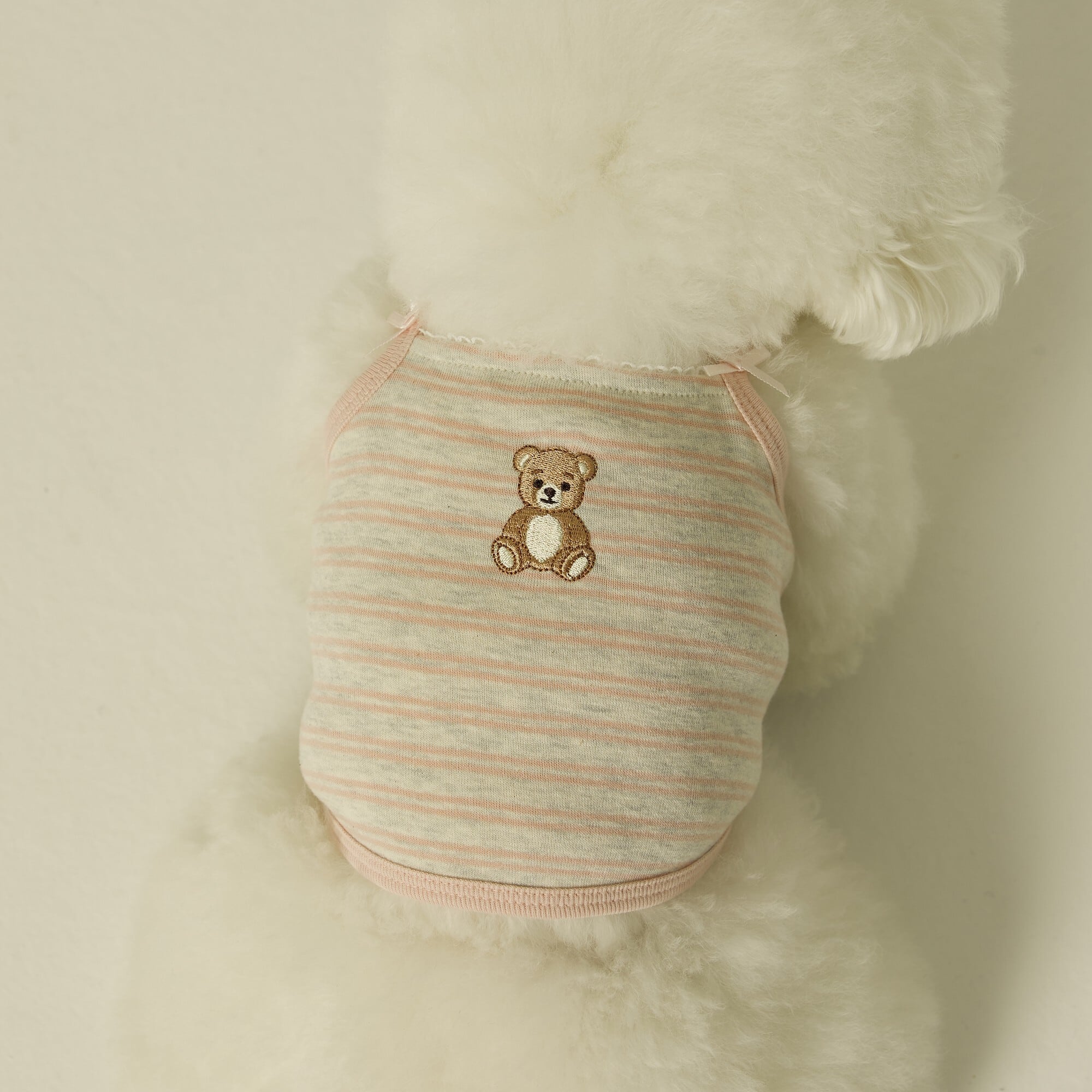 【予約】[thesallyslaw] Pink bear top (stripe)